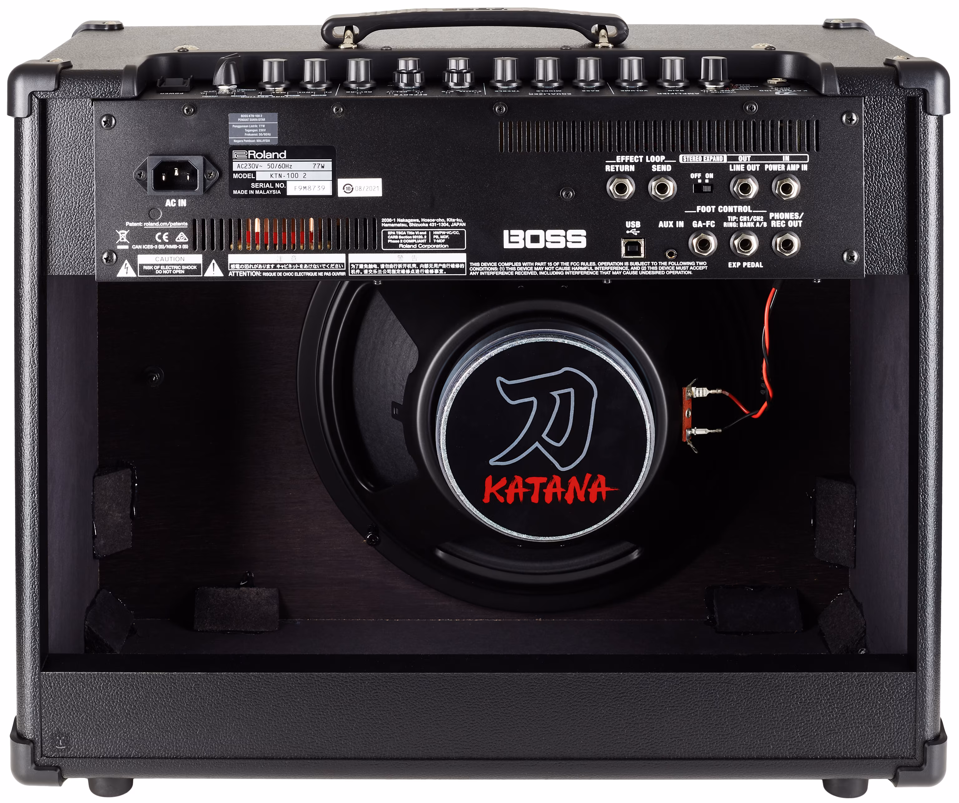 A Katana-100 MkII egy négycsatornás, 100 W-os gitármodellező kombó, amely a BOSS Tube Logic technológiát használja a klasszikus csöves erősítők autentikus torzítási kimeneti jellemzőinek visszaadására. A Power Control funkciónak (100W, 50W, 0,5W) köszönhetően még szobai hangerőn is élvezheti a gép "felrúgott" hangját és reakcióját.