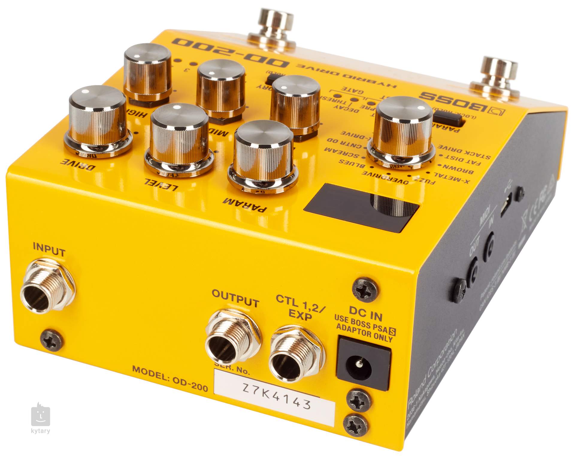A Boss OD-200 Hybrid Drive friss, új szeletet hoz az ovedrive, a torzító és a fuzz pedálok világába, így végre mindezek együtt, egy kézreálló pedál effekt testében. Az említett effektek tizenkét alaptípusát kínálja, amelyek karaktere tetszőlegesen beállítható a háromsávos EQ, a standard Level és Drive gombok, valamint a Param potenciométer segítségével, amelynek funkciója (vezérelt paramétere) a kiválasztott effekt típus alapján változik.