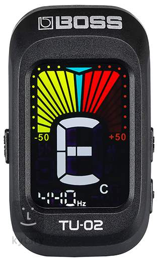 A Boss új TU-02 csíptethető hangolója kiválóan leolvasható, teljesen elforgatható színes kijelzővel, robusztus, stabil, puha párnázással ellátott csíptetővel és akár 24 órás folyamatos működéssel rendelkezik.