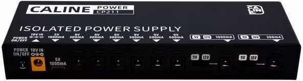 A CalineCP-211 multiadapter összesen nyolc kimenetet kínál a nagyobb fogyasztású gitárhatások áramellátásához (4x 9V DC/300mA, 2x 9V DC/500mA, 1x 9/12V DC/300mA, 1x 9/18V DC/300mA). A Type-C 5V DC kimenetet mobiltelefonok tápellátásához használhatja. Az összes kimenet egymástól szigetelt, így csendes működést biztosítanak, nem keletkezik nem kívánt zaj.