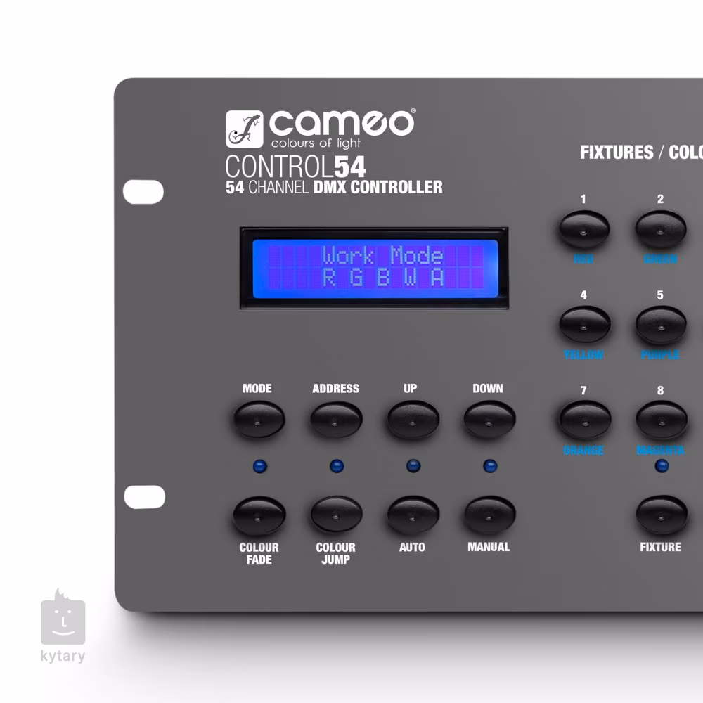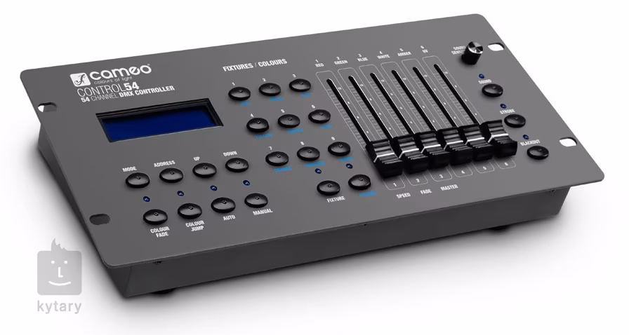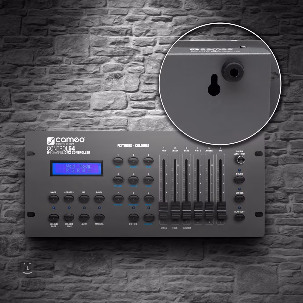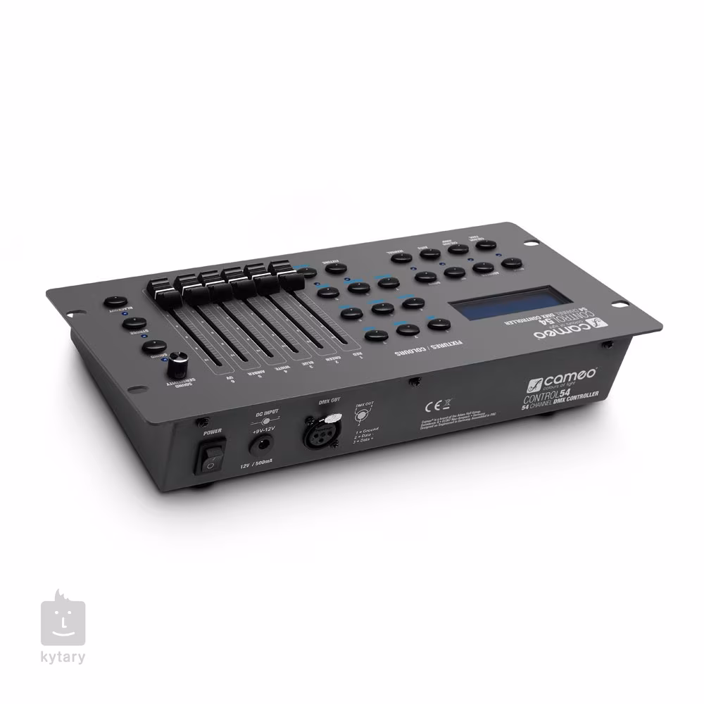 A CAMEO univerzális DMX-vezérlője intuitív rendszert kínál a világítóberendezések átfogó és távvezérléséhez. A Mixpult akár 54 DMX-csatornát is kínál, az acél vázon hat mobil fader, egy áttekinthető vezérlőpanel és egy LC-kijelző is található, amely a funkciókat és paramétereket mutatja. A hátsó panel ezután egy 3pin DMX kimenetet kínál a lámpák csatlakoztatásához. A CONTROL 54 9V-os elemmel is táplálható, így akár hálózati áram nélkül is használható kültéri rendezvényeken. A keverő számos automatikus és manuális üzemmódot tartalmaz, és teljes mértékben kompatibilis az RGB/RGBW/RGBWA + UV LED-ekkel.