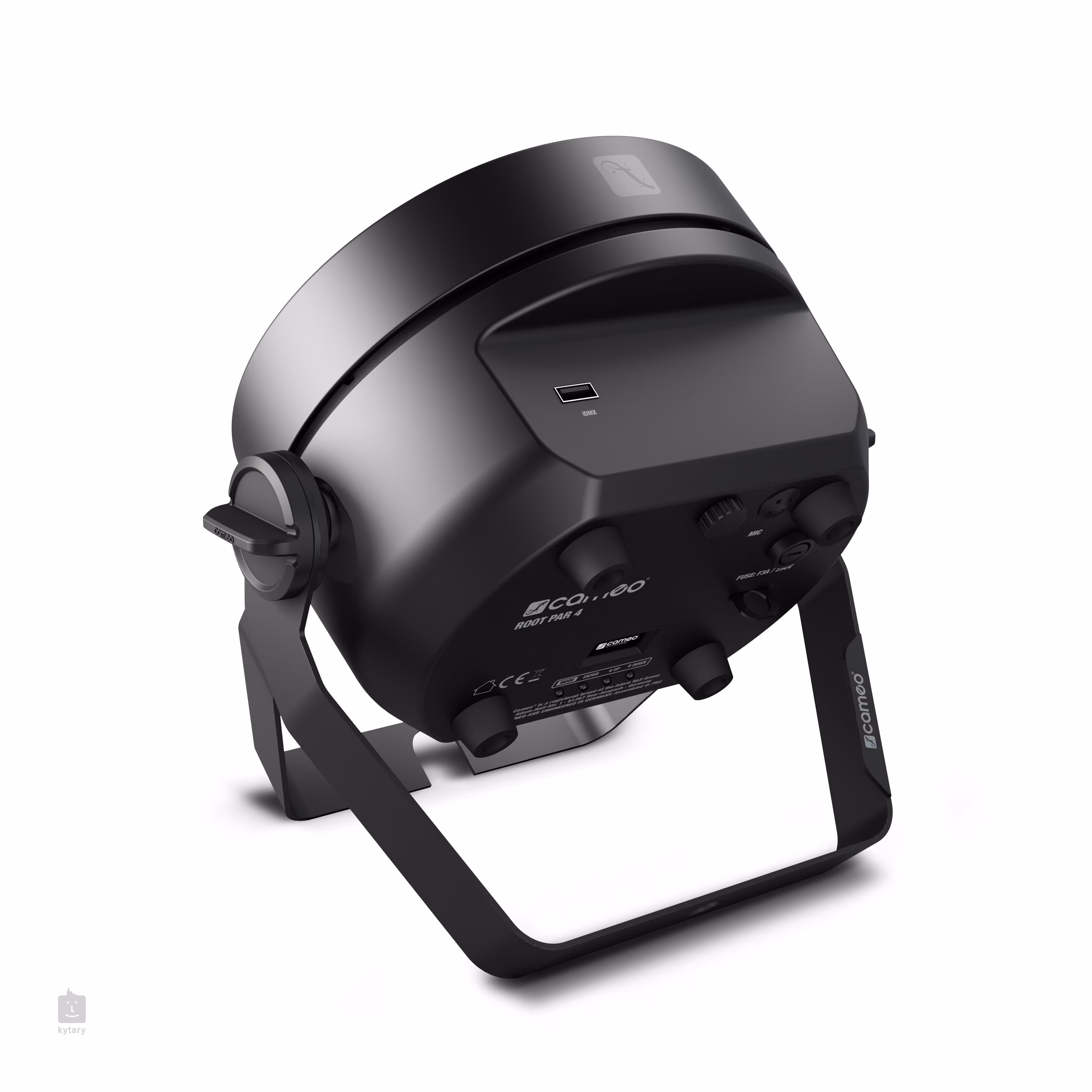 A Cameo Root Par 4 BK LED PAR reflektor egy kompakt és megfizethető árú reflektor, amely kifinomult funkciókkal rendelkezik, amelyek általában csak sokkal drágább berendezésekben találhatók. Fényforrása hét darab 4W-os RGBW LED-ből áll, amelyek rengeteg színkeverési lehetőséget biztosítanak, és lehetővé teszik a különböző árnyalatú fehér fény létrehozását. Ennek a lámpatestnek a nagy vonzereje a szabadalmaztatott EZchase® technológia, amely lehetővé teszi több eszköz összekapcsolását, hogy hosszadalmas programozás nélkül különféle kergetőhatásokat és sima színátmeneteket hozzon létre. Stroboszkópos hatás is elérhető.