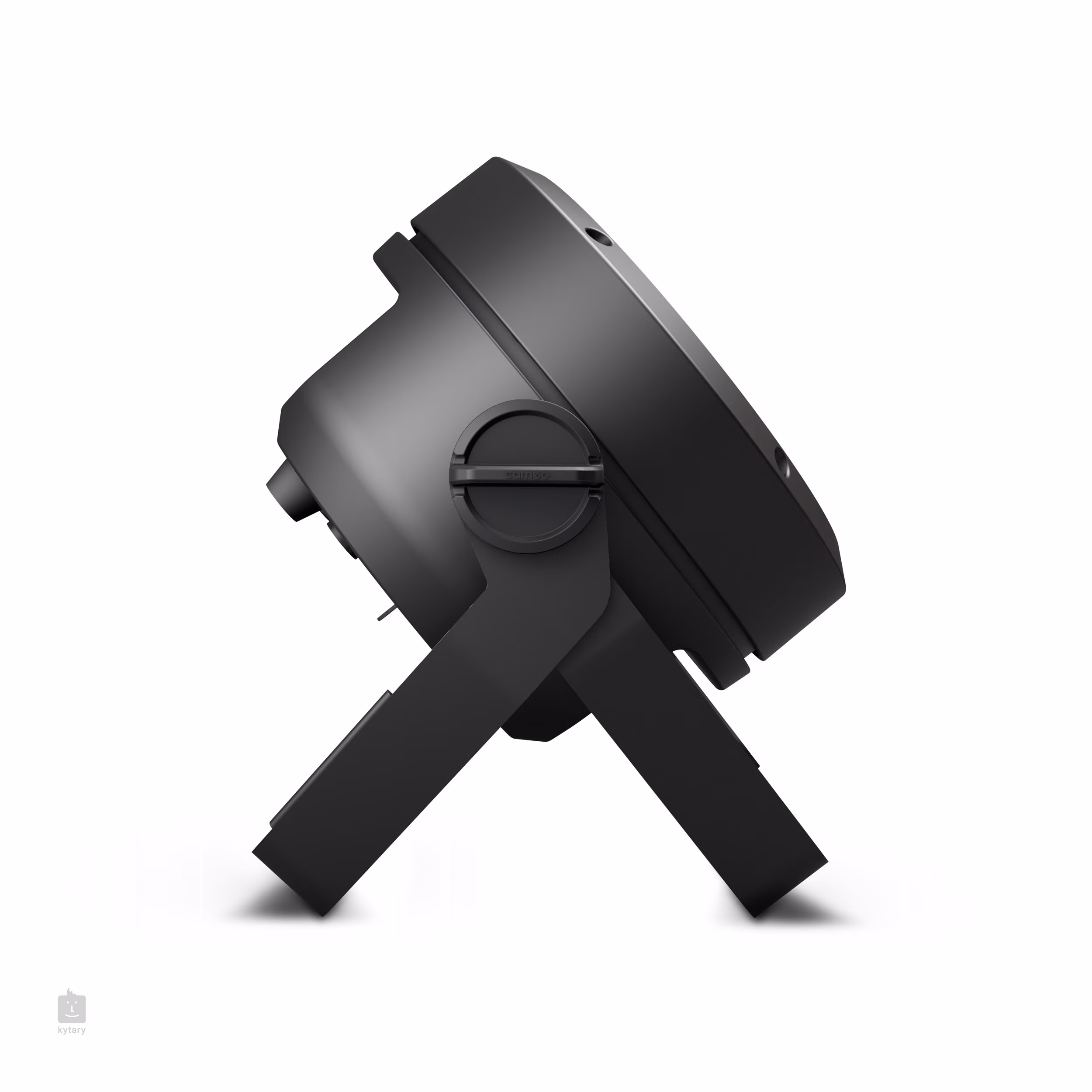 Kompakt kialakításának köszönhetően a reflektor ideális utazó világításhoz és DJ-k vagy más előadók számára. A lámpatesthez fém konzolok tartoznak, amelyek a lámpatest színpadszerkezethez való rögzítésére szolgálnak, vagy a földre helyezve állványként szolgálnak. A lapos kialakításnak köszönhetően a reflektort közvetlenül a talajra is elhelyezheti, és a beépített kihúzható lábak segítségével enyhén megdöntheti. A készülék szerkezete tartós és robusztus ABS műanyagból készült, ami biztosítja a hosszú élettartamot.