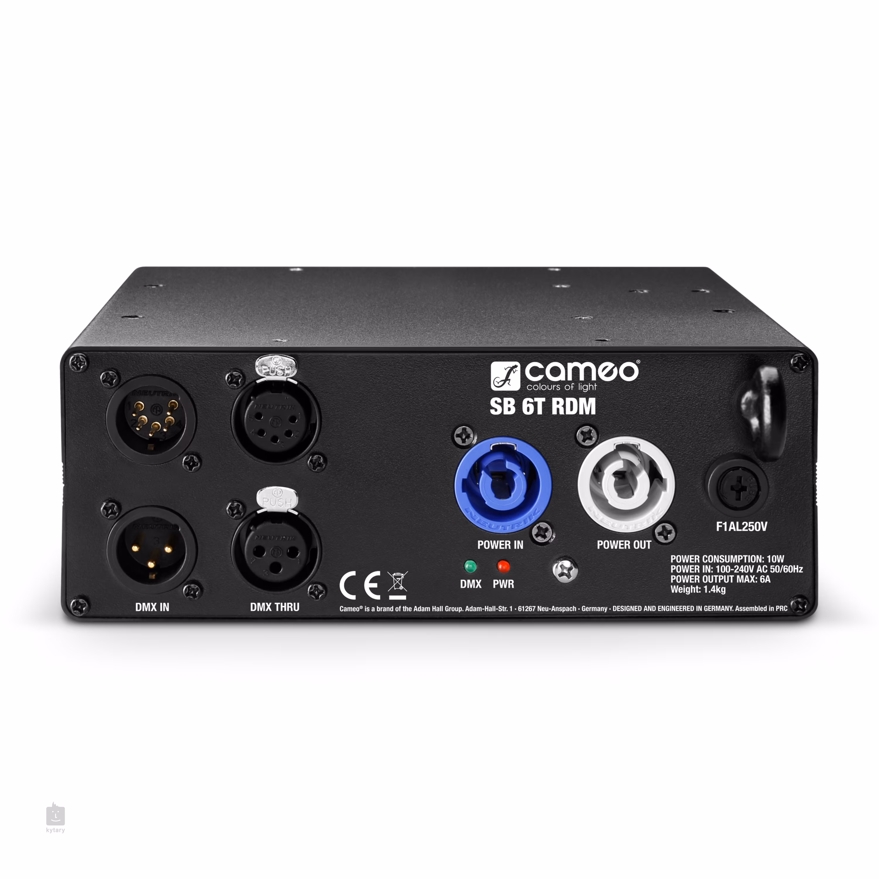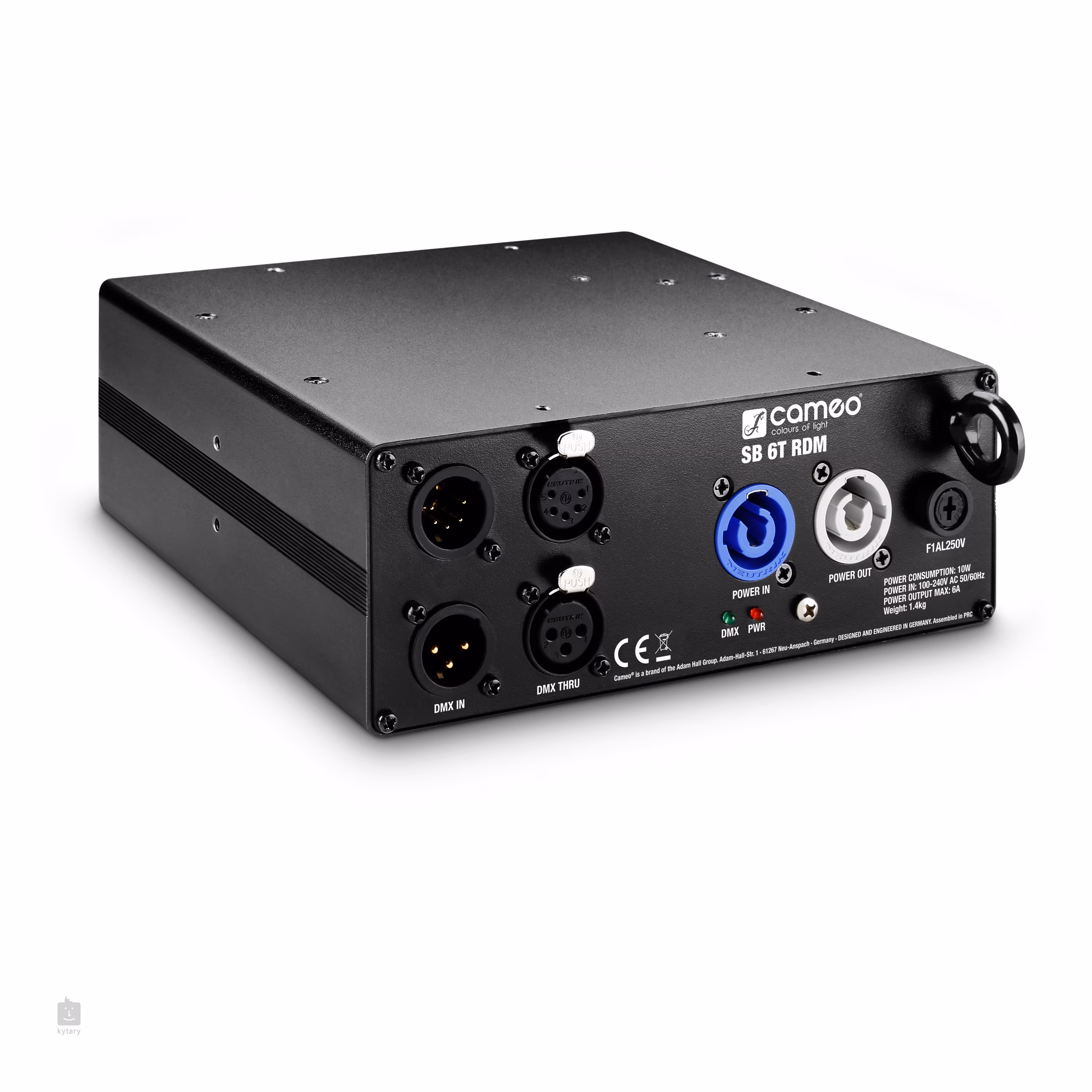 Az előlapon PowerCon csatlakozók is találhatók az elosztó tápellátásához és egy biztonsági szem a húzózsinórhoz. Az alján három M10-es menettel rendelkezik a fényszerkezetre való felakasztáshoz. A készülék 19"-os rackrendszerbe is felszerelhető (a bővítőket meg kell vásárolni).