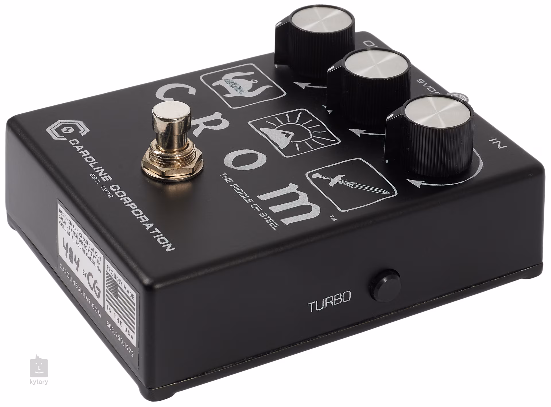 A Caroline CROM egy BC184 tranzisztorokkal ellátott fuzz effekt, amelyet a Muff stílusú és a Supa Tone Bender pedálok ihlettek. A doboz true bypassként van bekötve. A tápellátáshoz 9V-os adapter szükséges.