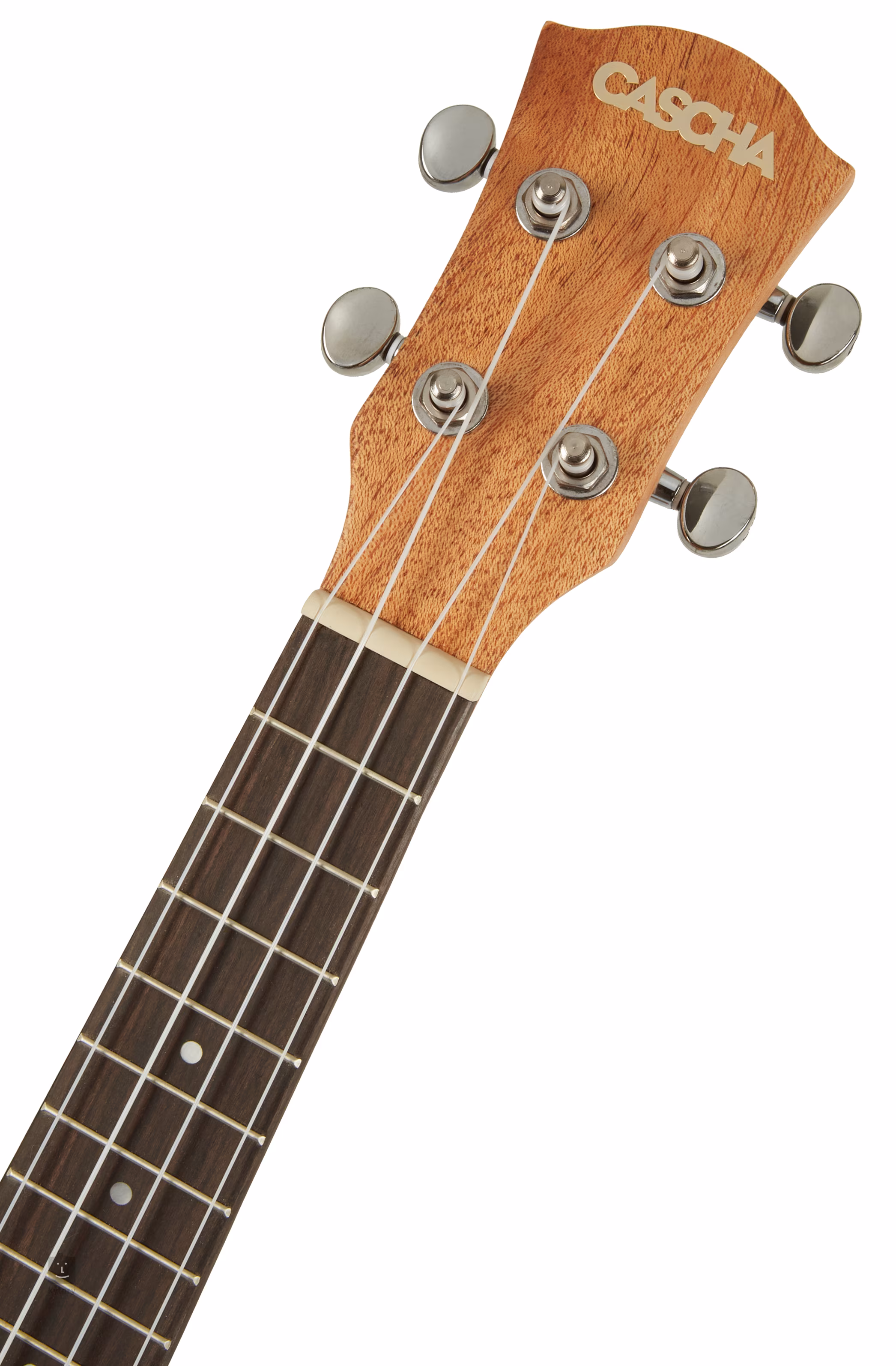 A Cascha Premium - Solid Top szoprán ukulele előlapja tömör lucfenyőből, míg a hátlap és az oldalak laminált mahagóniból készültek. A rózsafa fogólapot tizenhat bund osztja. Felületén a pozíciós pontok megkönnyítik a navigálást.