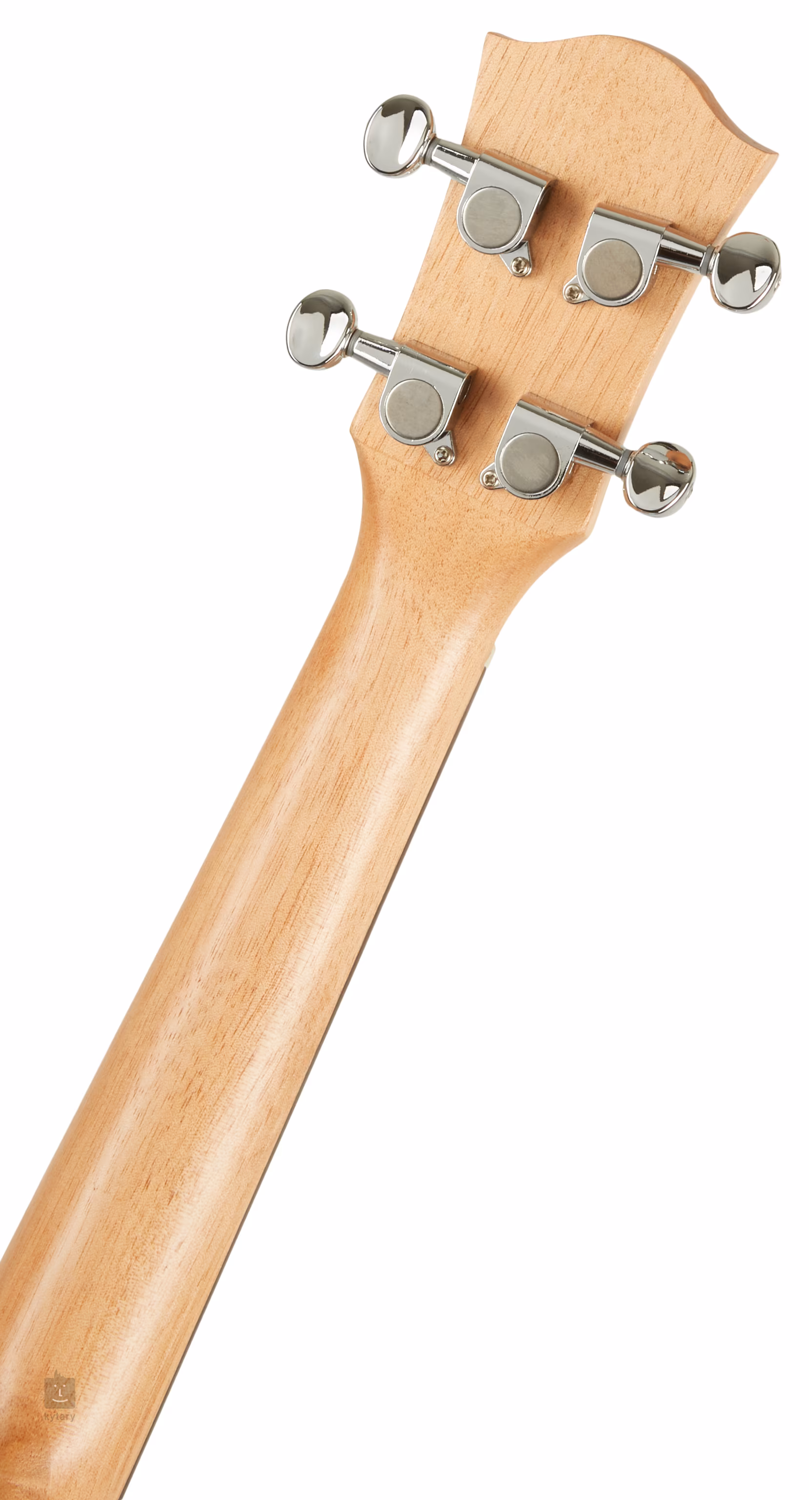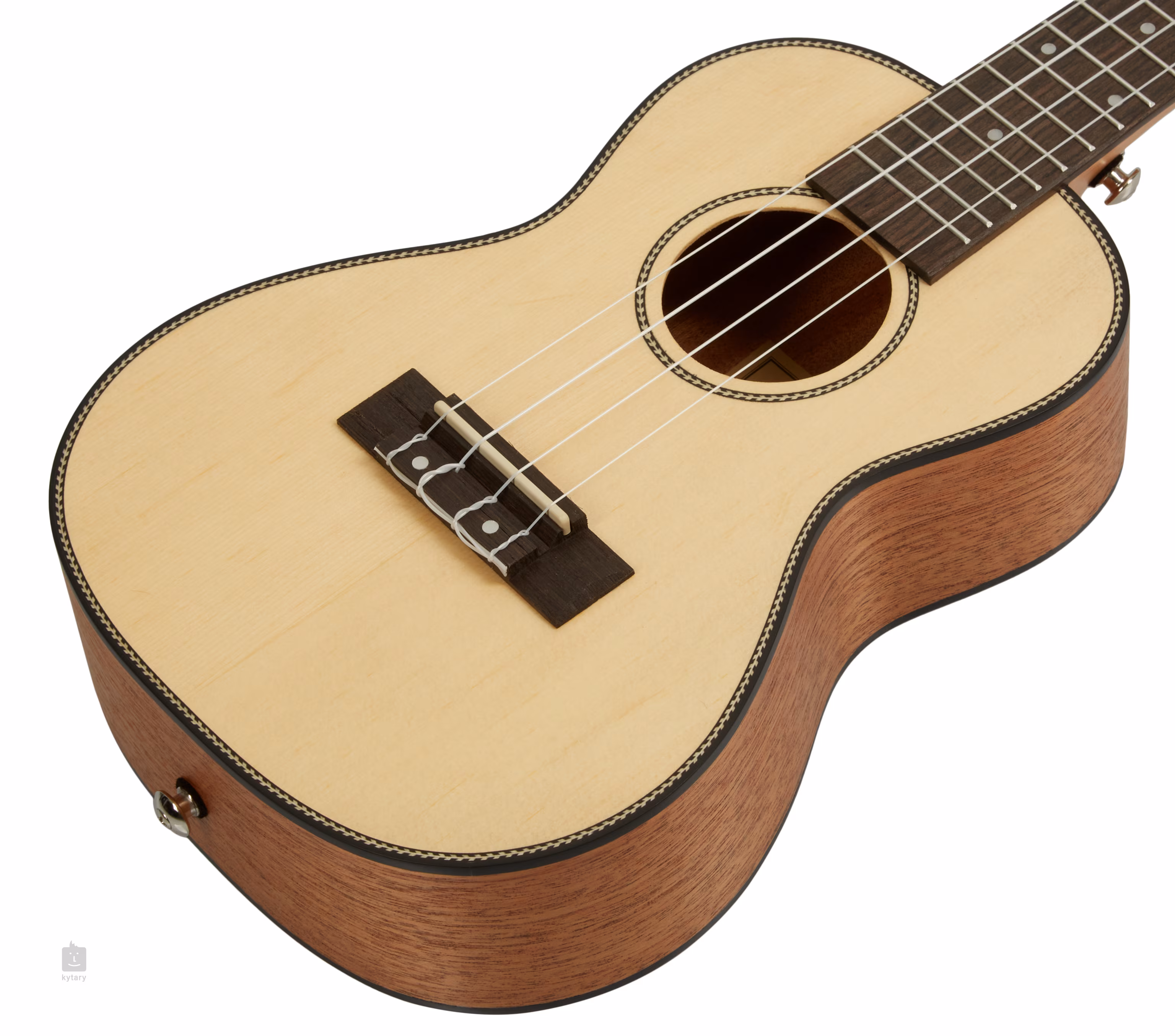 A húrokat krómozott gitártípusú mechanikákba és rózsafa fogólapba szerelték. A szép kivitelezést a halszálkás mintázatú rozetta és fül és a fekete, kétoldalas periméteres testszegélyek hangsúlyozzák. Az ukulele egy párnázott tokban (párnázás vastagsága 5 mm) három pengetővel érkezik.