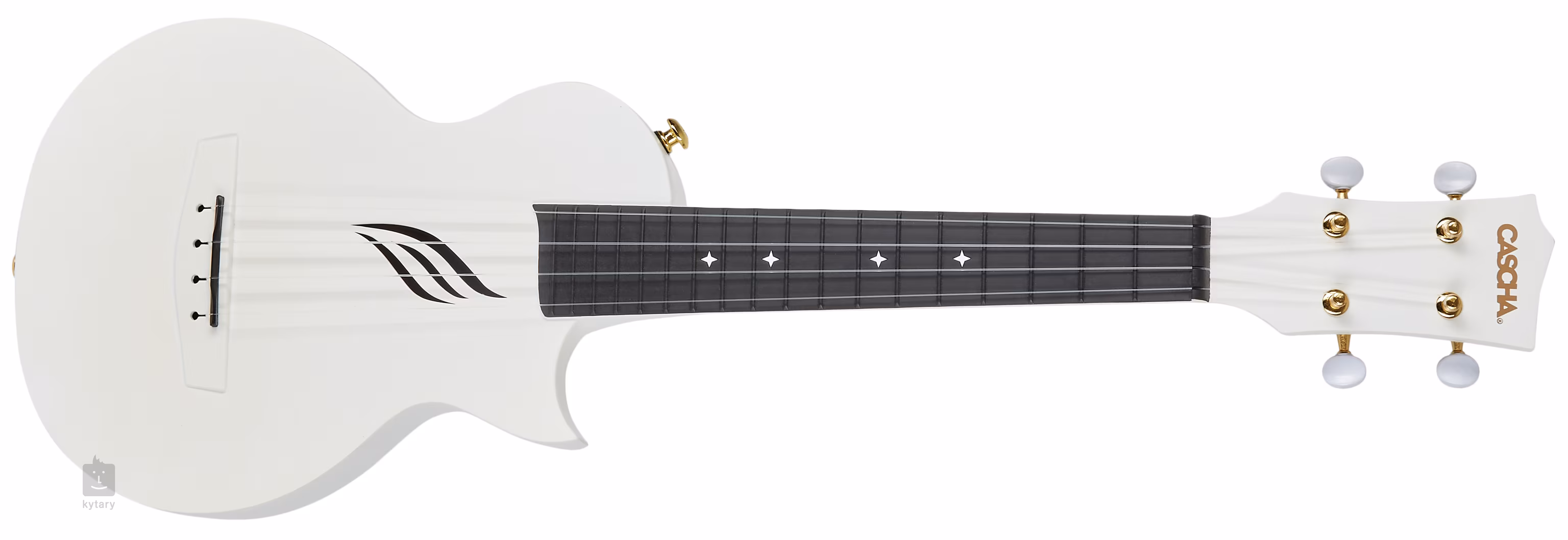 Ez a Cascha koncert ukulele szénszál erősítésű műanyagból (polikarbonát) készült a testtől a fejpántig. Ennek köszönhetően kis súly mellett is nagy ellenállást nyújt a külső behatásokkal és sérülésekkel szemben - és a hagyományos fa ukulelékhez képest más, tisztább hangzást (ehhez a kiegészítő oldalsó hanglyuk is hozzájárul). A hangszer modern kialakítása az alacsonyabb testkivágással jó fogólapfogást biztosít még a magasabb fogólap pozíciókban is. A fluorocarbon húrok jó hangolása garantálja a nyitott gitár típusú mechanizmusokba való illeszkedést.