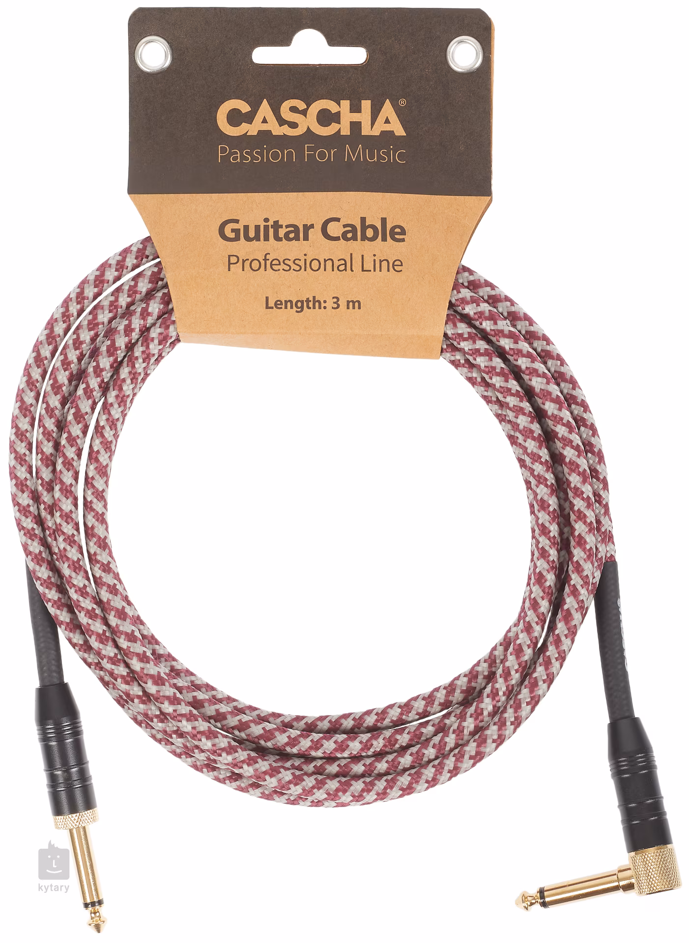 . Cascha Professional Line Guitar Cable, Angled, Tweed Red, 3 m