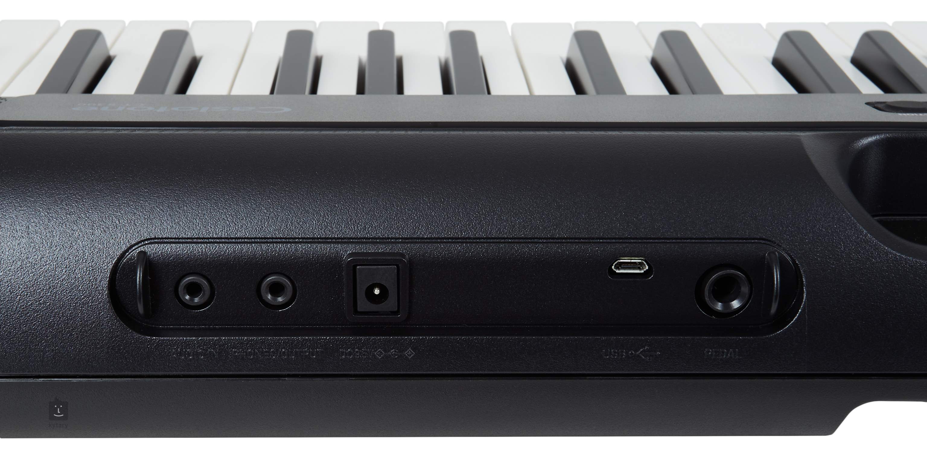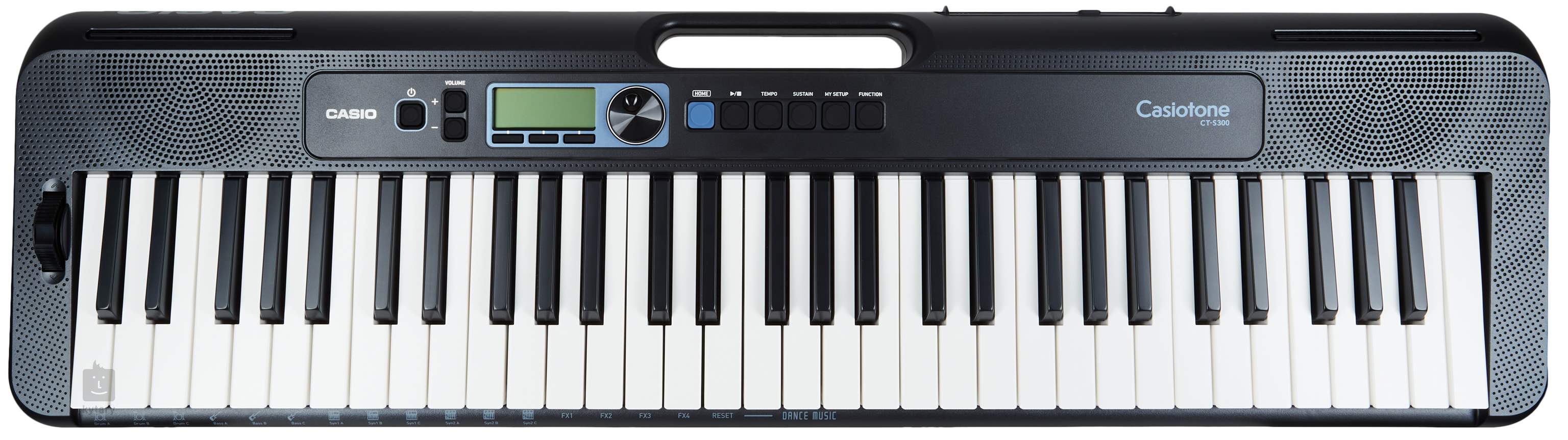 A Casio CT-S300 61 normál billentyűvel rendelkezik, két érzékenységi szinttel, a hangjelzést pedig tíz Reverb-effektussal, 400 hangregiszterrel gazdagíthatja, vagy használhatja az automatikus kíséretet, ahol 77 ritmusból választhat. A billentyűk beépített metronómot, transzponáló/hangoló gombot és MIDI-vételi csatlakozót is tartalmaznak. A világos kijelzőn jól láthatóak a billentyűbeállítások, és ez a modell egy szórakoztató Dance Music üzemmódot is tartalmaz, amely még a teljesen kezdők számára is lehetővé teszi a modern táncstílusok lejátszását. A Dance Music ötven zenészmintát és számtalan hanghatást tartalmaz. A hangzásról két 2,5 W-os hangszóró gondoskodik, és ha éjszakai játékos vagy, akkor a hátoldalon található fejhallgató-kimenetnek mindenképpen hasznát veszed. A hátlapon egy Aux bemenet is található mikrofonhoz (Dance Music mód)/zenelejátszóhoz és egy kimenet a sustain pedálhoz. A CT-S300 teljes mértékben kompatibilis a Chordana alkalmazással, amelyet ingyenesen letölthet a Google Play vagy az Appstore oldalról.