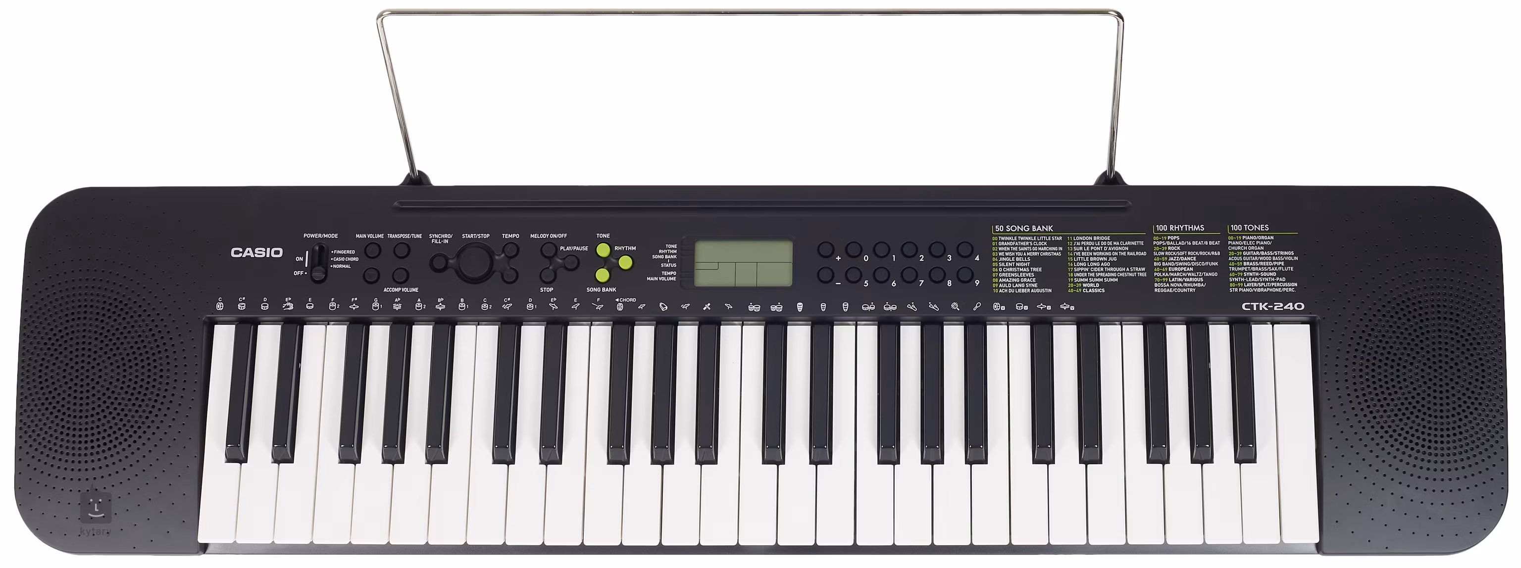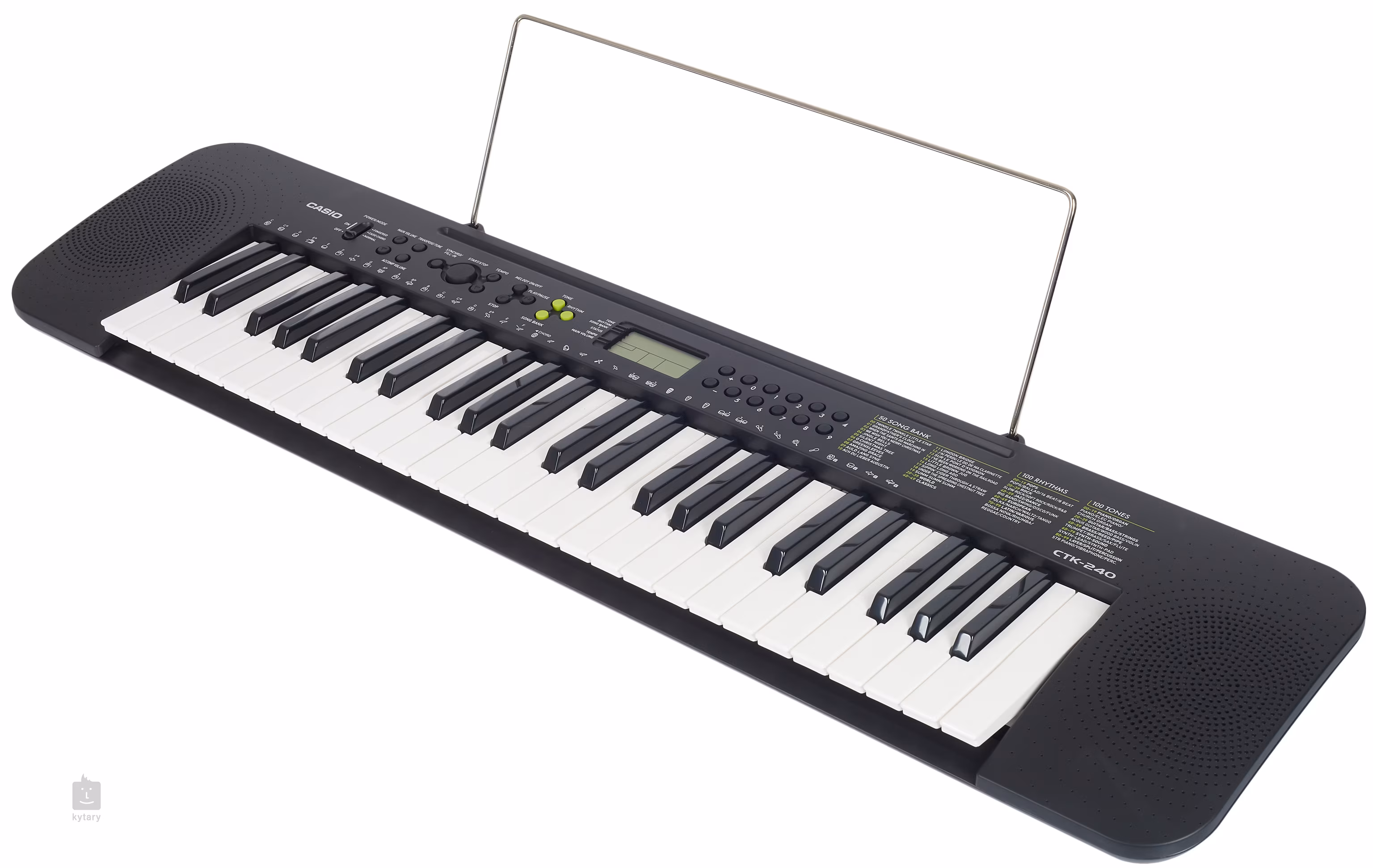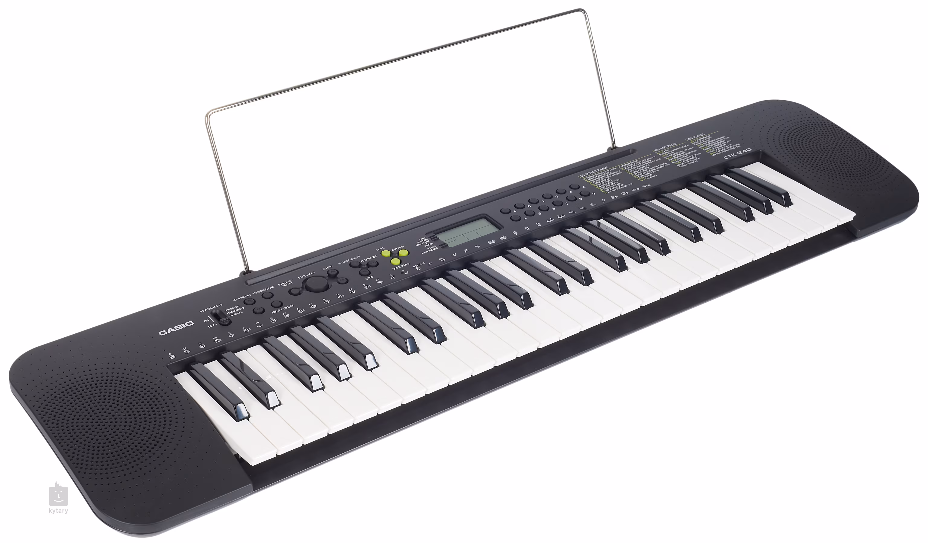 A Casio CTK-240 kiváló társ minden feltörekvő billentyűs számára. A 100 hangot, 100 ritmust és 50 zeneszámot kínáló eszköz élvezetes, fokozatos folyamatot tesz lehetővé a billentyűs hangszerek megtanulása során. Nem okoz gondot a transzponálás, a dallamok kikapcsolása a daloknál és a billentyűk elemről történő táplálása sem, ami további lehetőségeket nyit meg arra vonatkozóan, hogy mikor és hol játszhat. Tehát mindenképpen jó választás kezdőknek, vagy zeneoktatási eszközként.