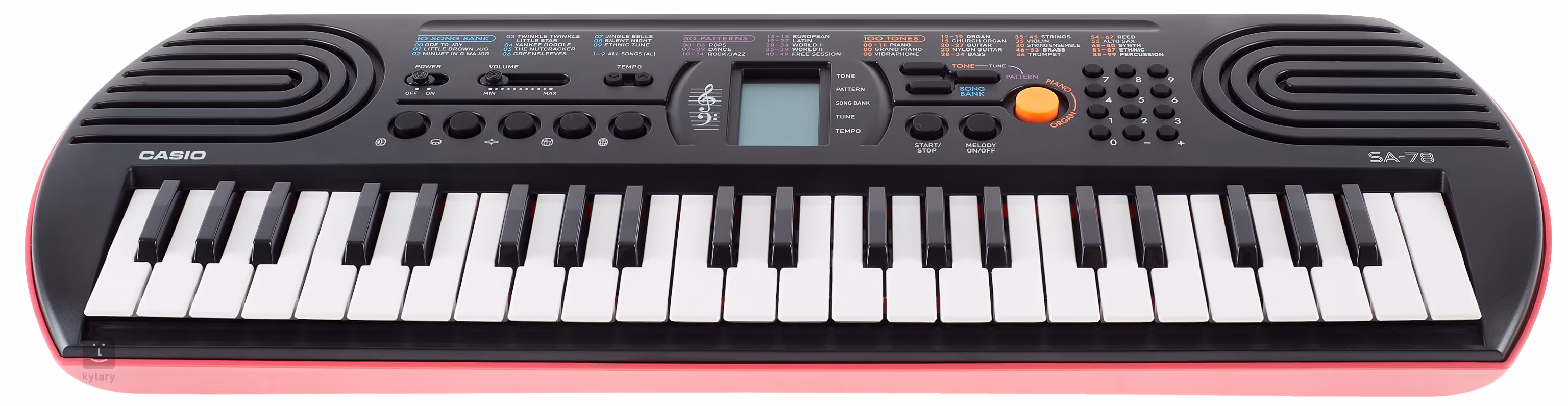 A Casio SA-78 ideális első hangszer. A színes alapnak köszönhetően vizuálisan is vonzó a gyermekek számára, ugyanakkor az oktatóprogramnak köszönhetően valóban fejleszthetik zenei érzékenységüket, motorikus készségeiket és billentyűzetjátékukat.