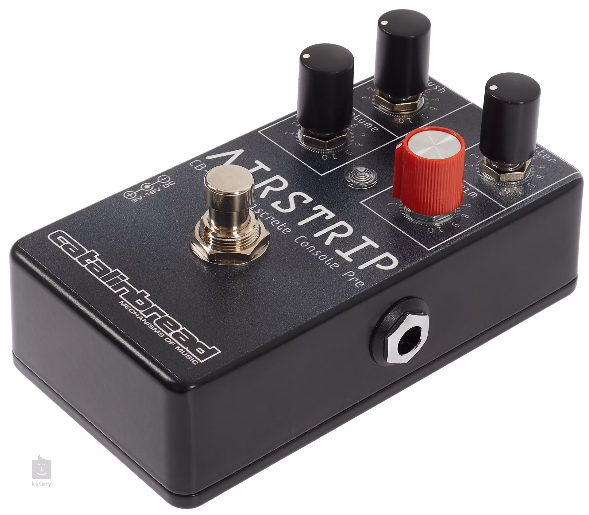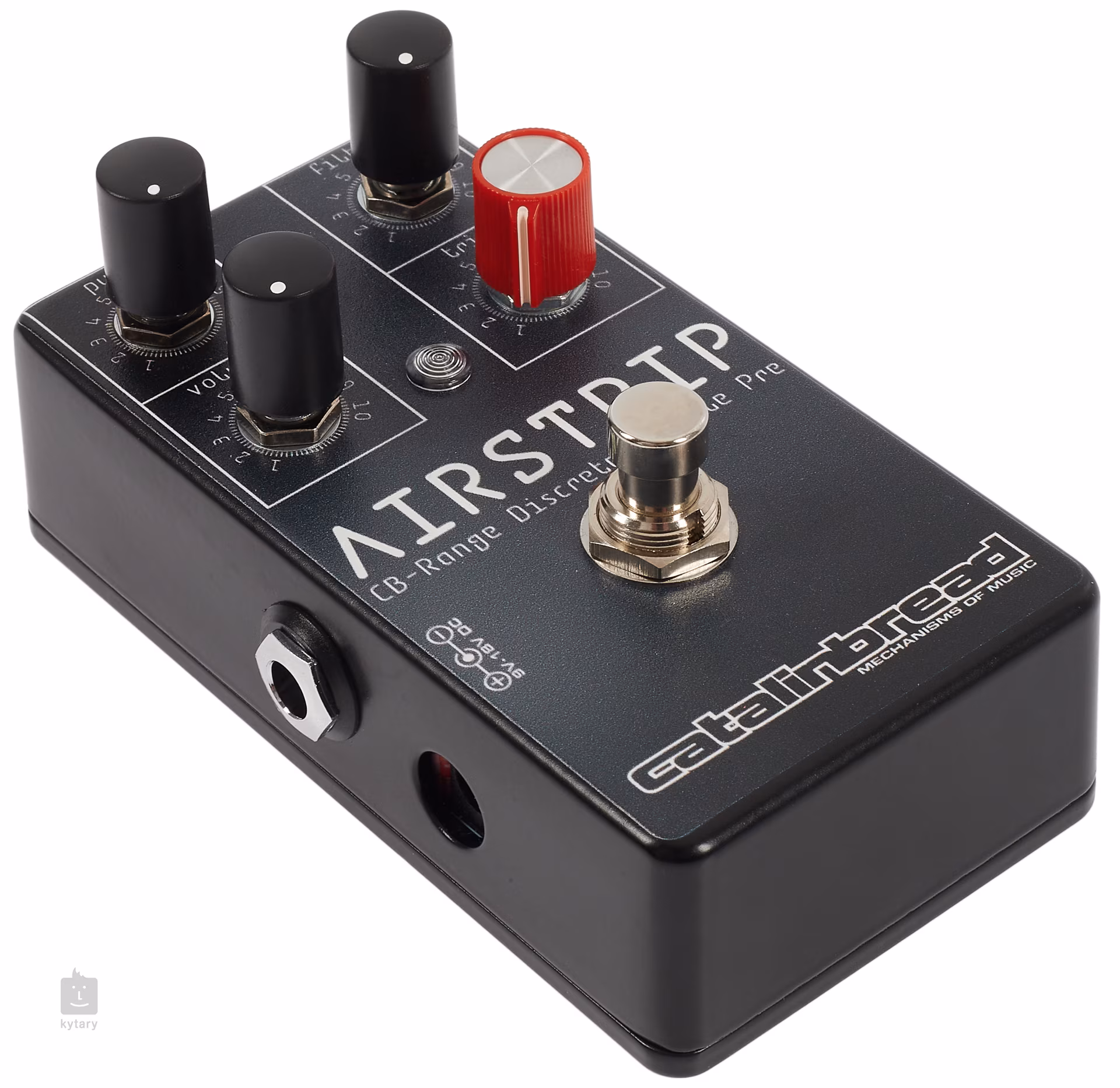 Az amerikai Catalinbread cég Airstrip gitárpedálját a Trident A Range keverőpult ihlette, amely az 1960-as évek végétől az 1980-as évek elejéig uralta a brit felvételi színteret. Ez idő alatt a hangzása olyan művészek felvételeit befolyásolta, mint David Bowie, Queen, Lou Reed, Frank Zappa és mások. Ennek a gépnek a szívében egy varázslatos előerősítő állt, amely finom tiszta hangzást tudott produkálni, de a legnagyobb varázslat akkor jött el, amikor a hangzás kissé sós lett, és az előerősítő egy telített, hömpölygő, harmóniáktól hemzsegő hangzást kezdett produkálni erősítés alatt. Az Airstrip ennek a híres gépezetnek a hangzását hozza el neked egy kompakt pedál formájában, amely a hangok spektrumát nyújtja a tiszta boosttól a torzítás szinte minden elképzelhető fajtájáig. Utazzon vissza abba az időbe, amikor olyan sztárok, mint a Rolling Stones, Bowie és Zappa uralták a zenei színteret!