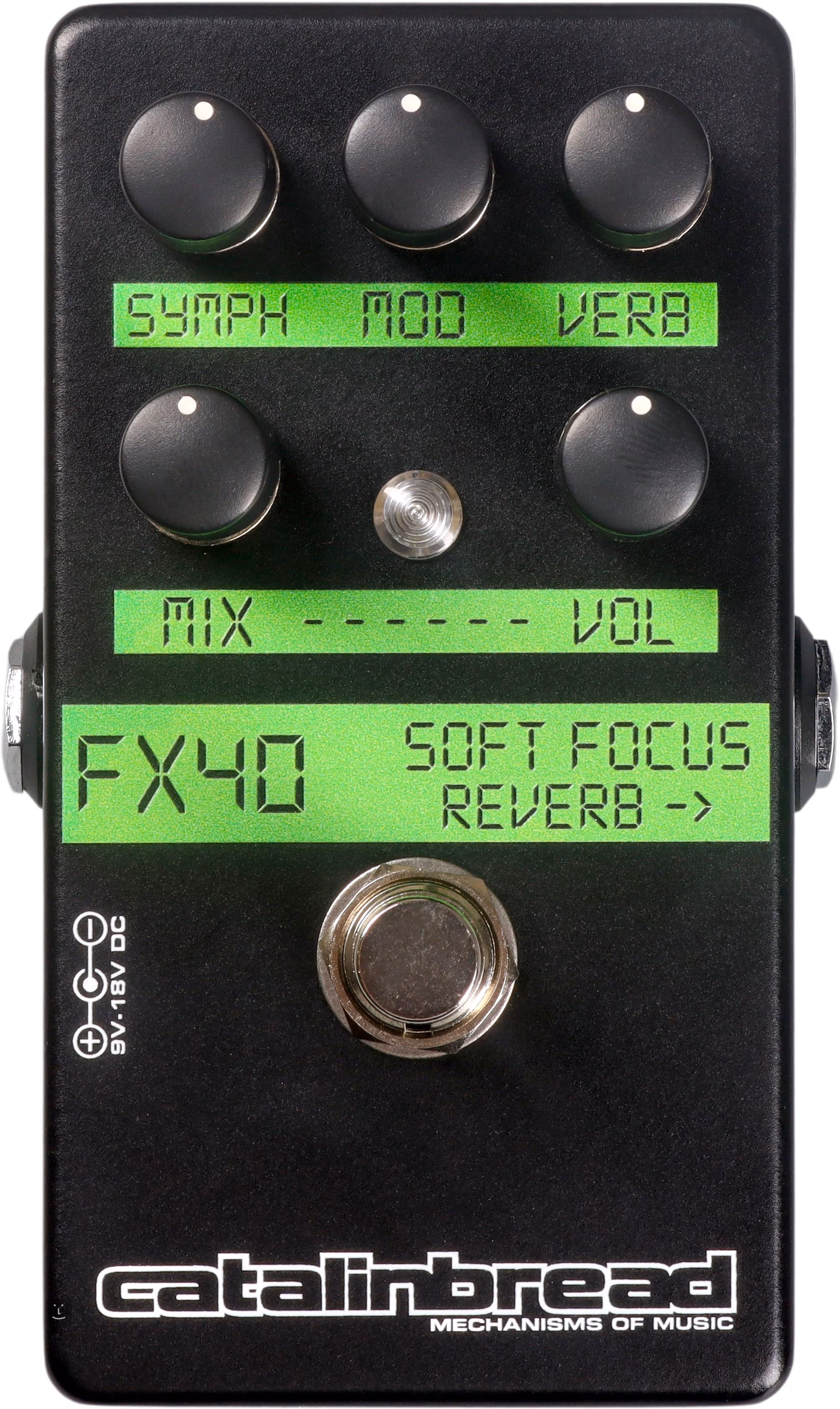 A Catalinbread SOFT FOCUS pedál effekt egy shoegaze stílusú reverb, amelyet a Yamaha FX500 digitális multieffektes patch ihletett, amely az 1990-es években számos shoegaze zenekar hangzásának egyik alapeleme volt. Alapvetően ez egy erősen módosított lemezes reverb három útvonallal - egy többszólamú kórusmoduláció, amelyet a MOD gomb vezérel, egy oktáv effekt (oktáv-felfelé, SYMPH szabályzó) keverve egy reverb effekttel, és egy tiszta reverb effekt (VERB). A fennmaradó gombok határozzák meg a száraz/nedves jel arányát és a kimeneti hangerőt/erősítést.