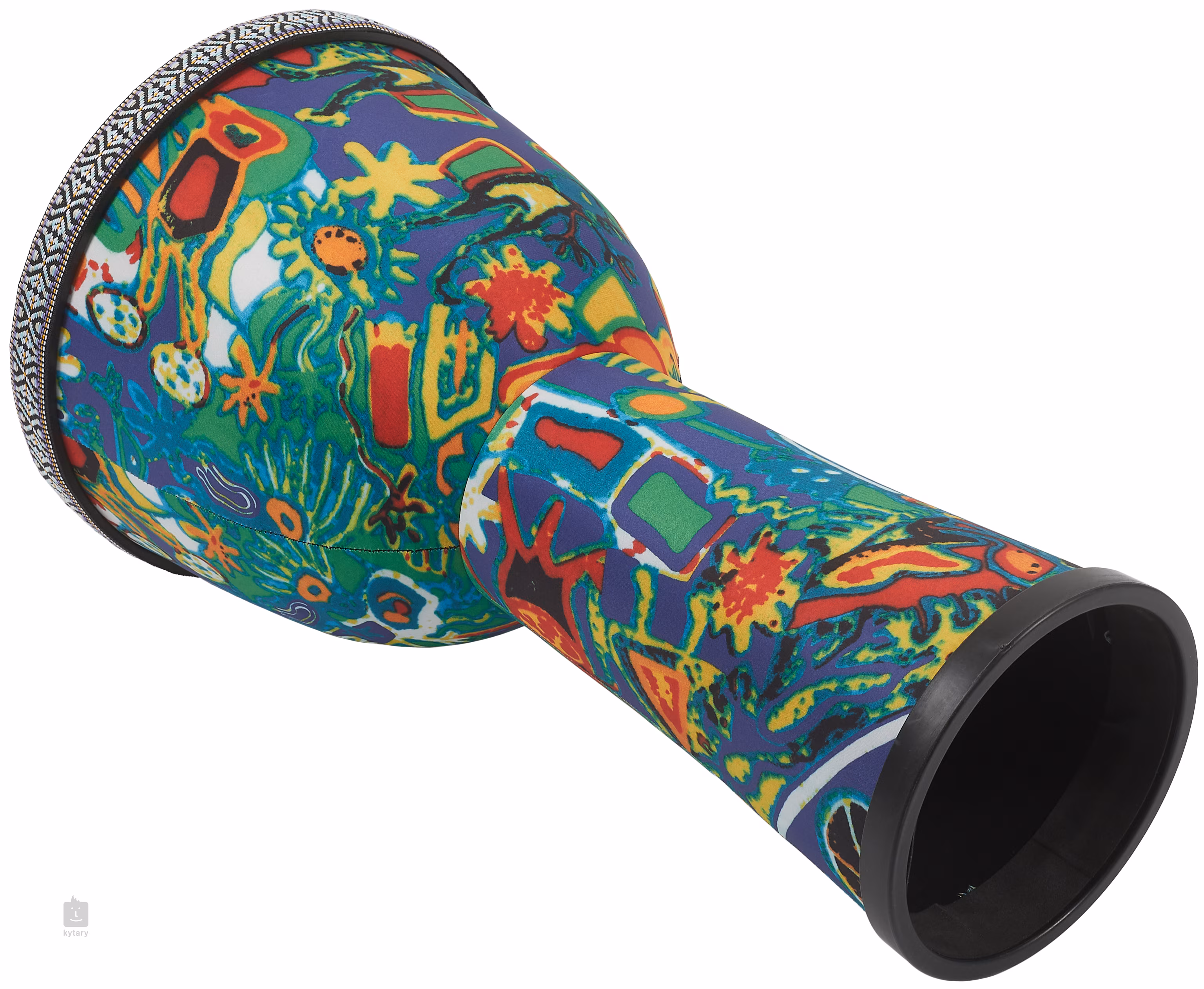 Ez a djembe különösen alkalmas gyermekek vagy kezdők számára. Robusztus ABS műanyagból készült, amely a szintetikus membránnal együtt nem csak nagyszerű hangtulajdonságokat biztosít, hanem a mechanikai sérülésekkel és az időjárási körülményekkel szembeni maximális ellenállást is. Így nem kell aggódnia amiatt, hogy megsérül vagy elhangolódik, még utazás vagy szabadtéri játék közben sem. Tartalmaz továbbá egy hordtáskát, amely a vállpántoknak köszönhetően hátizsákként is hordható, egy hevedert, hogy kényelmesen, állva is játszhasson.