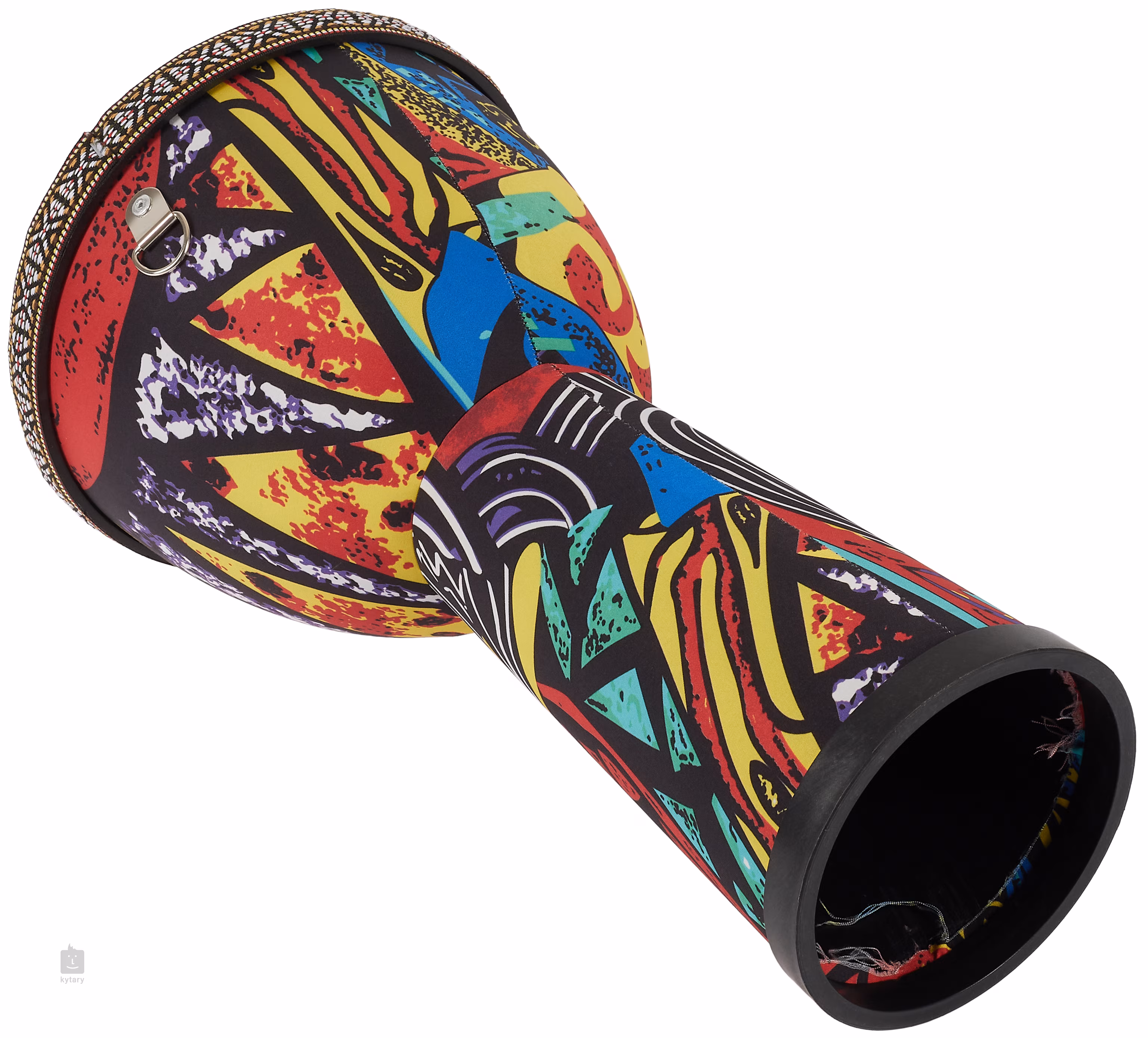 Ez a djembe különösen alkalmas gyermekek vagy kezdő zenészek számára. Erős ABS műanyagból készült, amely a szintetikus membránnal kombinálva nemcsak kiváló hangzási tulajdonságokat biztosít, hanem maximális ellenállást is a mechanikai sérülésekkel és az időjárási körülményekkel szemben. Így nem kell attól tartania, hogy megsérül vagy elhangolódik, még utazás vagy kültéri játék közben sem. A csomaghoz tartozik egy hordtáska is, amelyet a vállpántok segítségével hátizsákként lehet hordani, valamint egy pánt, amely kényelmes játékot biztosít álló helyzetben.