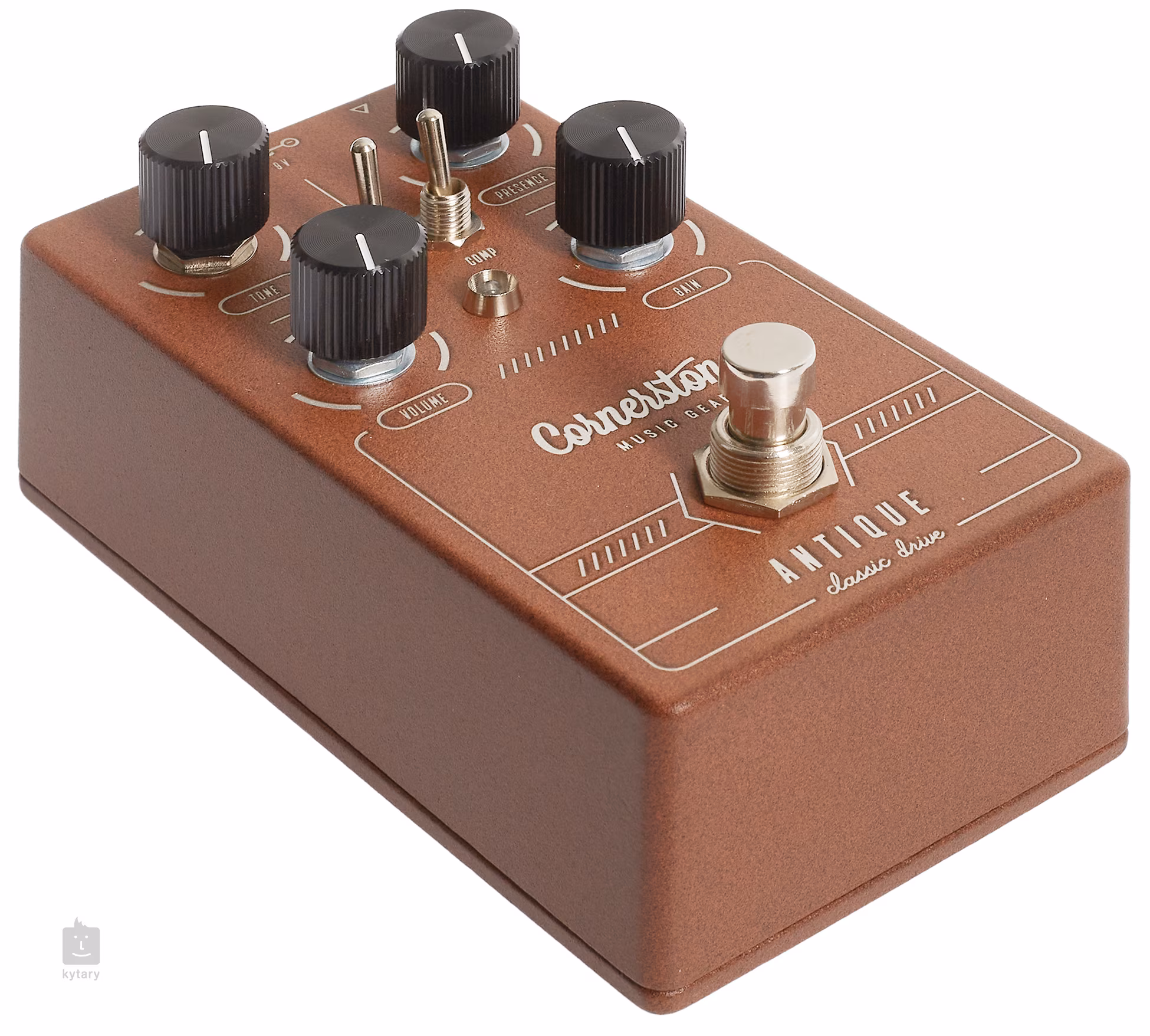 Így a Cornerstone Antique bemutatja a TS pedál egy rugalmasabb változatát, Tone és Presence gombokkal a hangzás beállításához a basszus és a felső középtartományban, egy mid boost/cut kapcsolóval 1Khz-en, és egy Comp kapcsolóval a kompresszió szintjének tetszés szerinti beállításához. A doboz szolgáltatásait a klasszikus rock és blues, valamint más, egészen más stílusok játékosai is értékelni fogják.