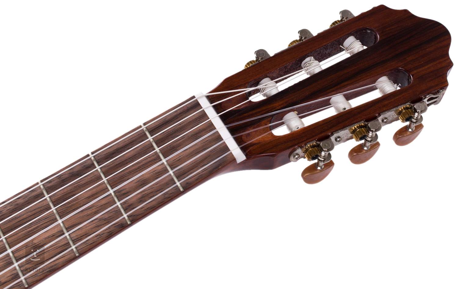 Ez a Cort AC sorozatba tartozó klasszikus gitár olyan modern funkciókat kínál, mint a kiváló minőségű Fishman elektronika vagy az alacsonyabb testű cutaway, amely megkönnyíti a játékot a magas fogólap pozíciókban. Ez egy megfizethető árú, minőségi fából készült modell, amelyet meleg, mély hangzás jellemez. Mint az AC sorozat minden modellje, ez a gitár is meglehetősen nagyvonalú a játékpontosság tekintetében, és sok apró hibát megbocsát - így ideális hangszer kezdő gitárosok számára.