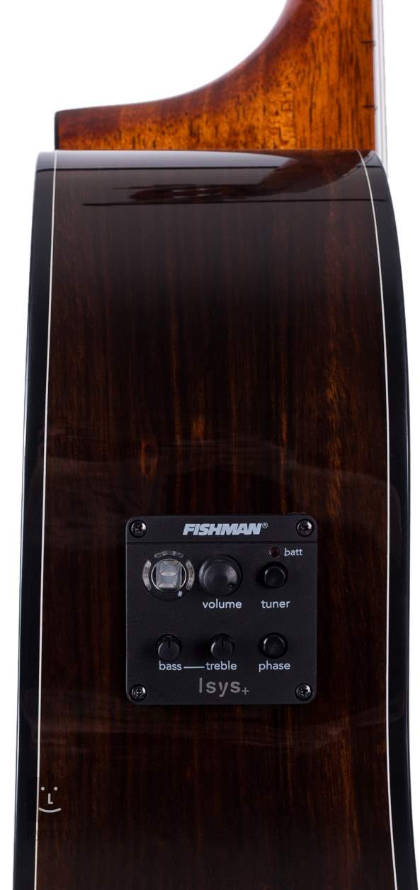 A gitár Fishman Isys Plus elektronikával van felszerelve, beépített hangolókarokkal és Fishman Sonicore piezo hangszedővel.