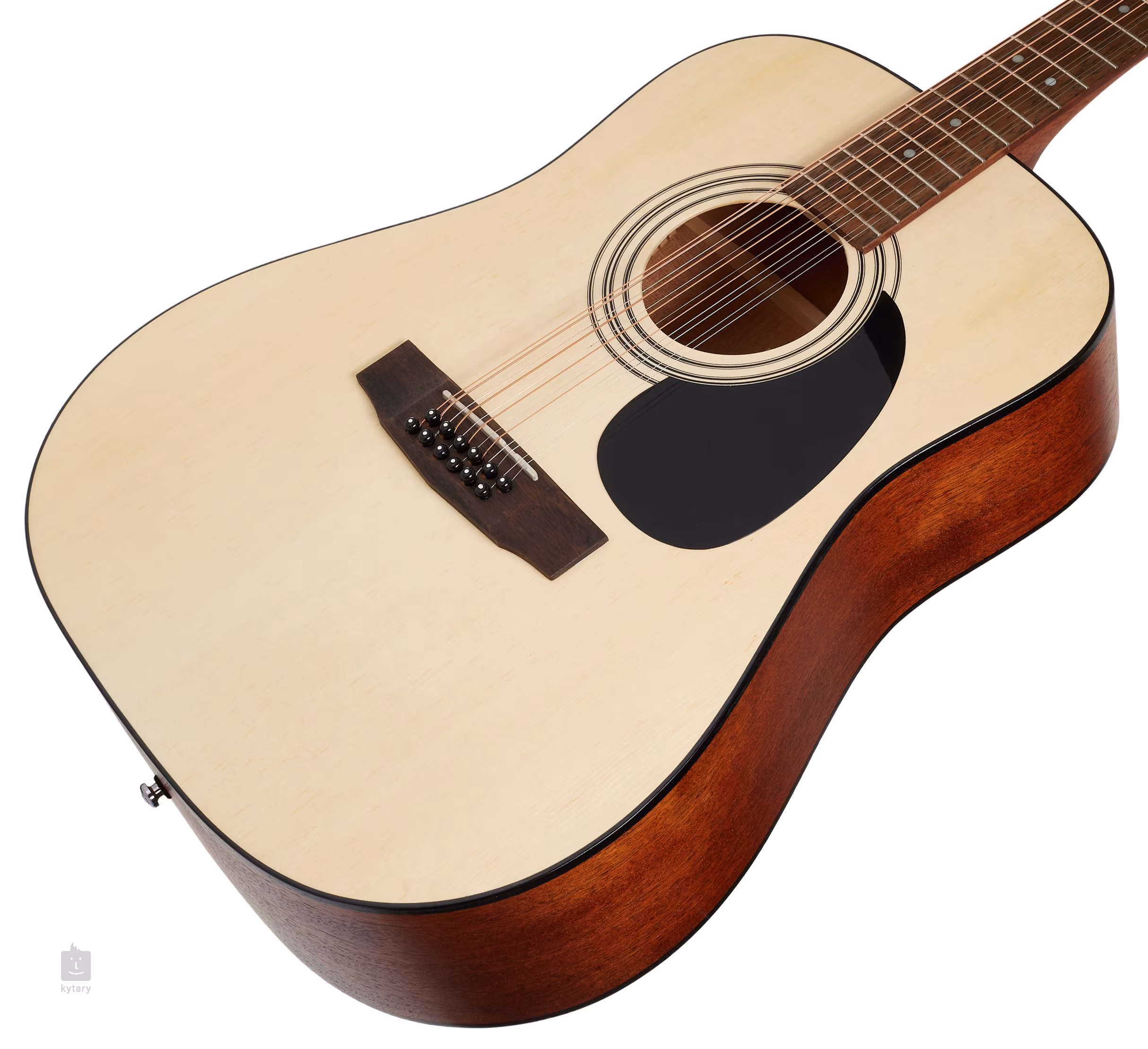 A Cort AD 810-12 egy 12 húros dreadnought akusztikus gitár. A hangszer rétegelt teste lucfenyő hangfalból, valamint mahagóni hát- és oldallemezből áll. A fáknak ez a jól bevált kombinációja kiegyensúlyozott hangzást biztosít a hangszernek, a szükséges mennyiségű hangszíntisztasággal és melegséggel. A mahagóni nyak egy egzotikus merbau fogólapra van ragasztva 20 bunddal, és a pozíció pontok megkönnyítik a navigálást.