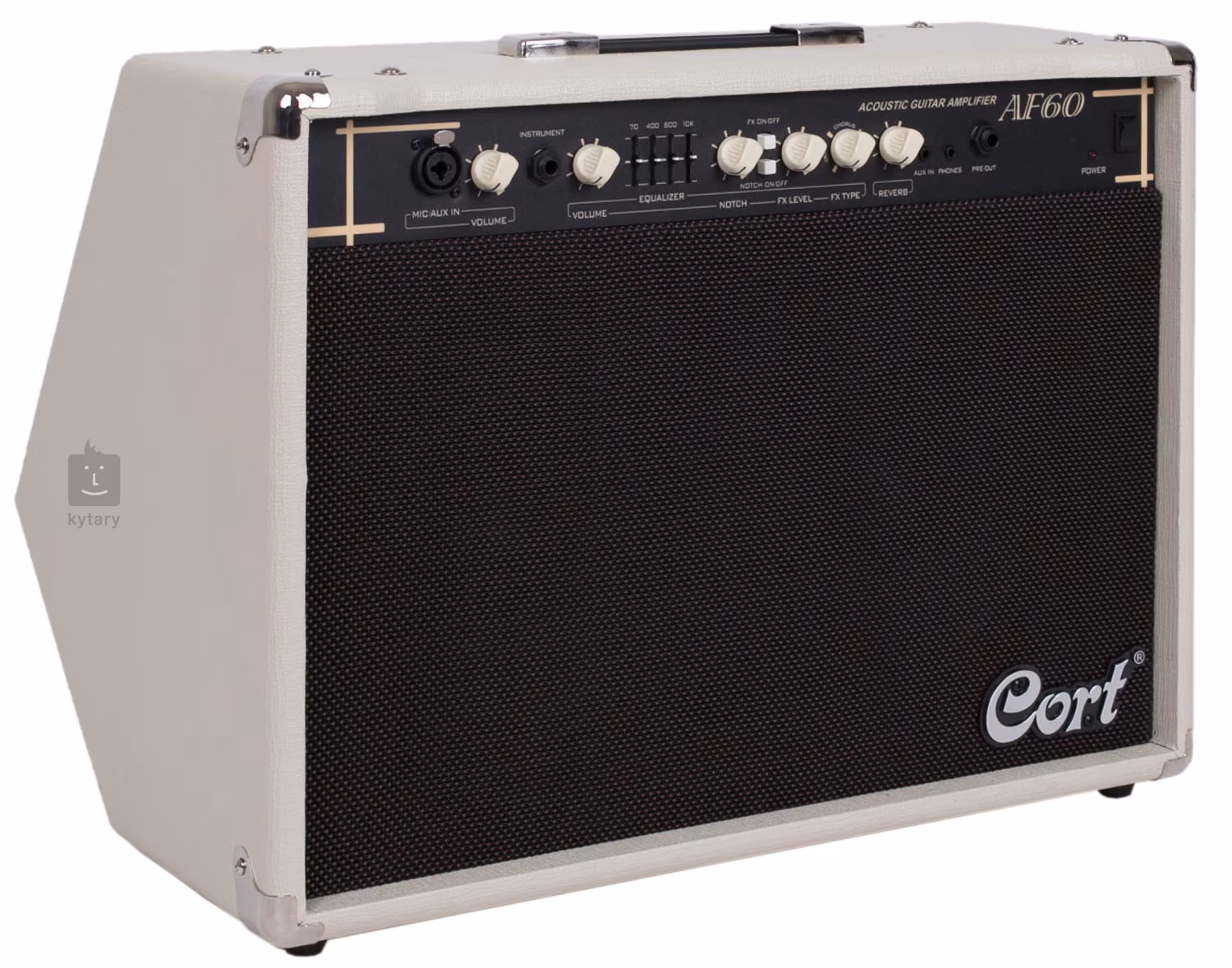 Az AF60 egy tranzisztoros kombo akusztikus gitárhoz. Két 8 hüvelykes hangszórója és 1 hüvelykes magas hangszórója kiegyensúlyozott hangzást biztosít, erőteljes basszussal és tiszta magas hangokkal. 60 wattos teljesítményével könnyedén megállja a helyét klubokban, színházakban, templomokban vagy koncerttermekben. Kedvező ára miatt mindenki megengedheti magának a vásárlását.