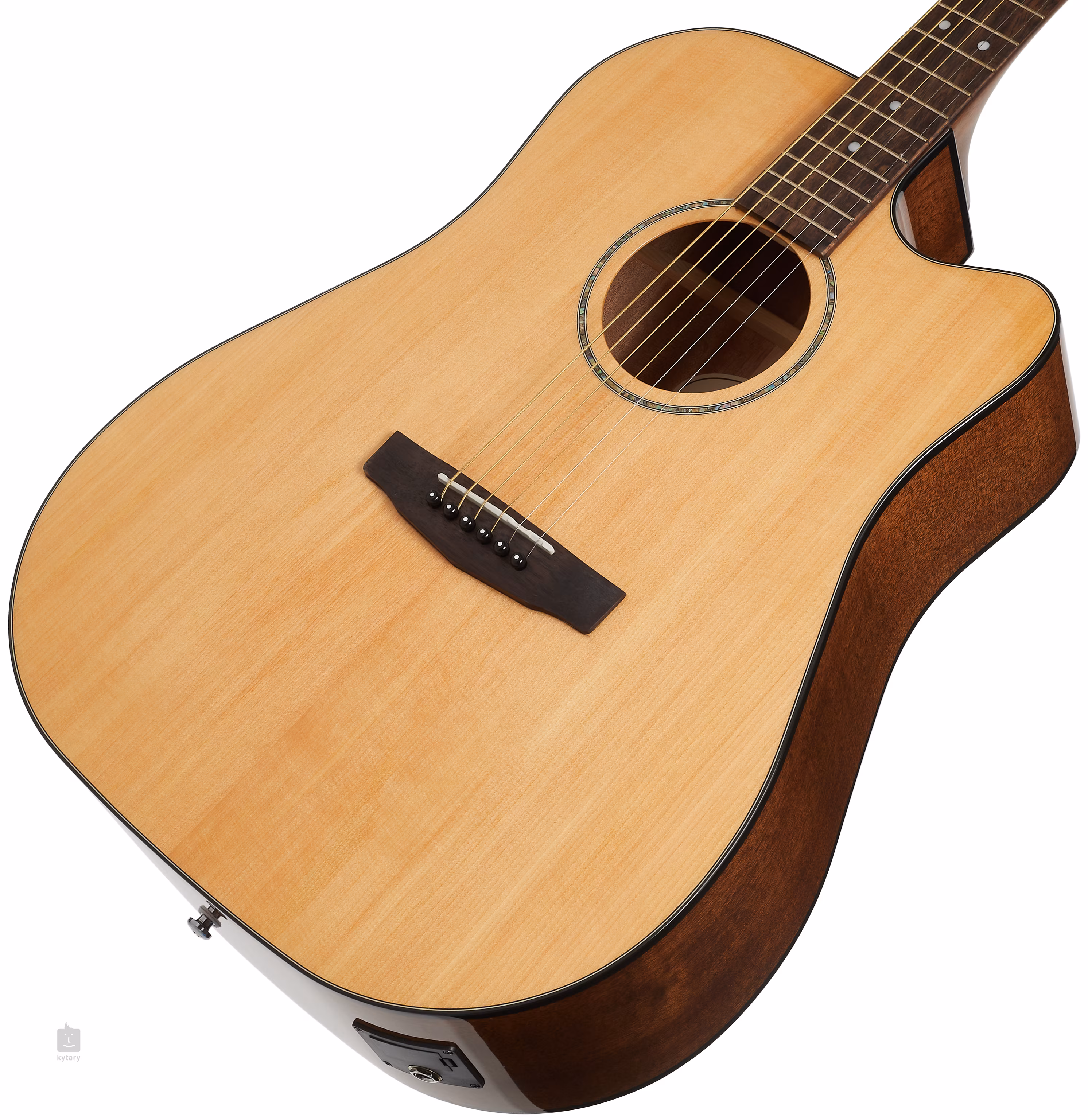 A hangfelvételről egy Cort CE304T előerősítő gondoskodik, háromsávos EQ-val és beépített hangolóval. A húrokat a cég öntvény hangolókarjai és fügefa fogólapja rögzíti. A stílusos kivitelezést hagyományos elemek hangsúlyozzák a gyöngyház rozetta (abalone) és a fekete testkötés formájában.