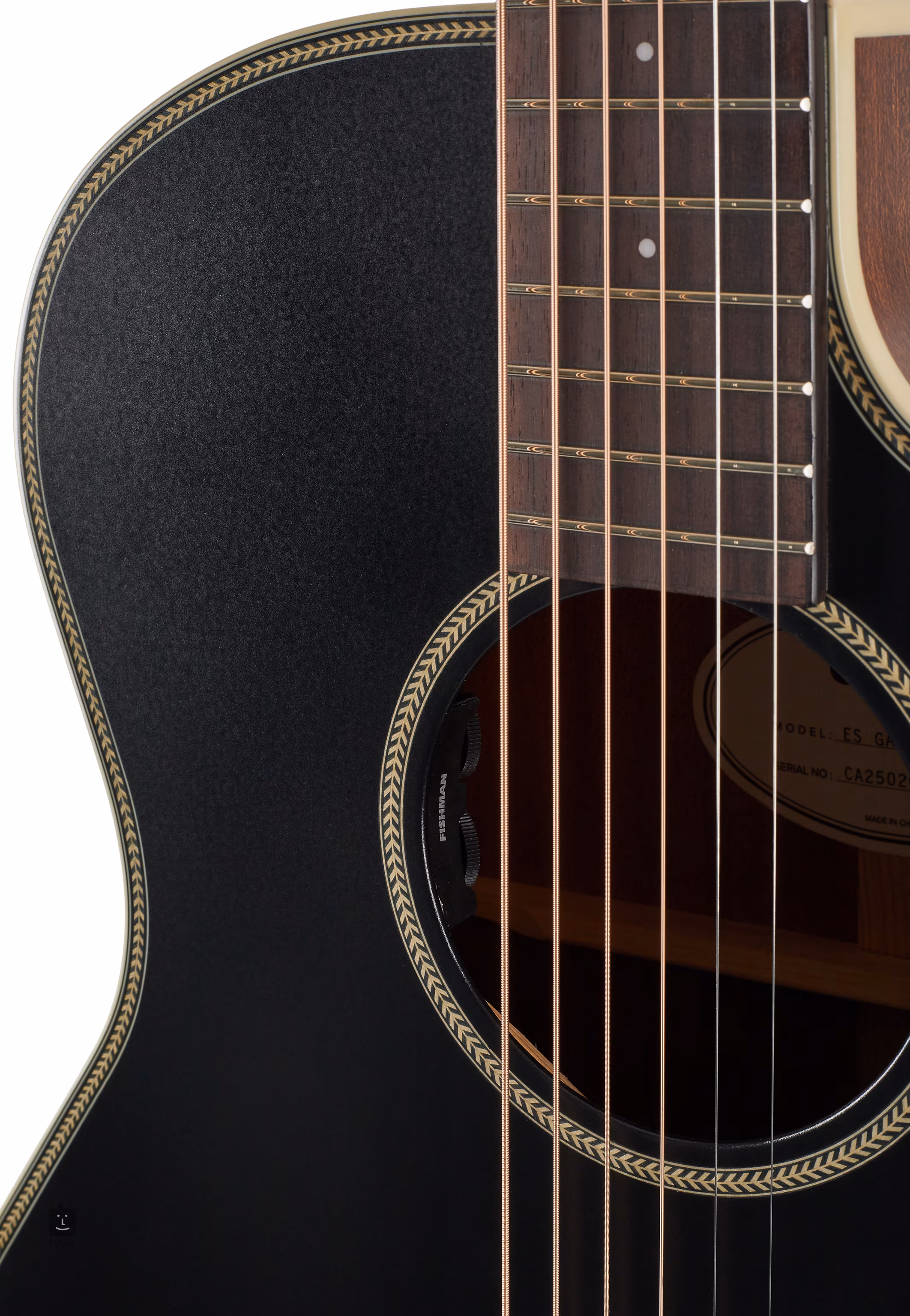 A húsz bunddal ellátott rózsafa fogólapot egy kényelmes C-profilú mahagóni nyakra ragasztották. A fogólap tájékozódását pozíciópontok segítik. A húrokat a cég saját fejlesztésű nyitott meghajtójába és a valódi csont fogólap és nyereg fölé szerelt rózsafa fogólapba szerelték. A stílusos kivitelezést az elefántcsont utánzatú peremkötés és a halszálkás rozetta és a hangfal hangsúlyozza.