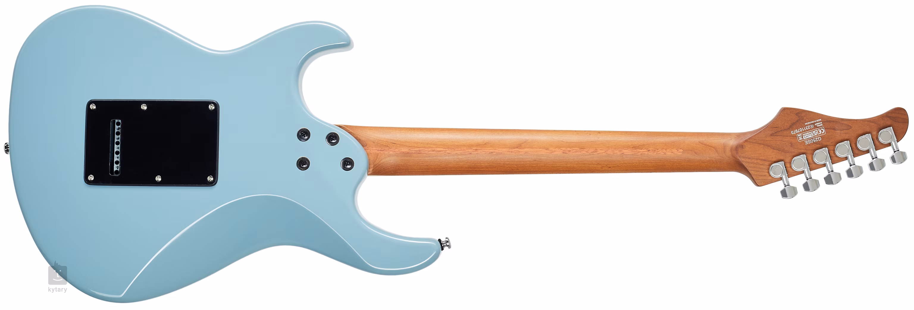 A húrokat a cég öntvény meghajtóiba és szinkronizált 2 pontos tremolóba szerelik. A stílusos kivitelezést az Ocean Blue Grey színösszeállítás, a fekete koptató és a krómozott hardverelemek hangsúlyozzák.
