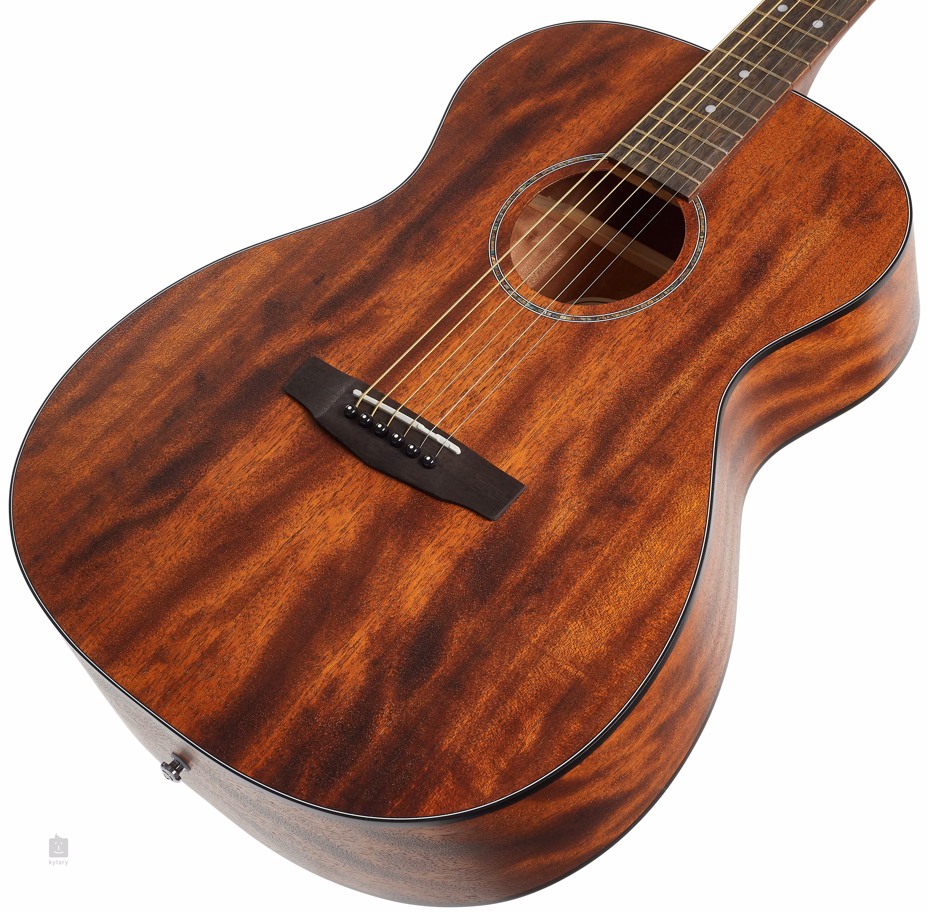 A Cort L60 M OP akusztikus gitár a kompaktabb Orchestra (OM) testtel ujjstílusú és pengetős játékra alkalmas. A teljes egészében mahagóni testszerkezetű, tömör hangfalú konstrukció gyönyörűen meleg, gazdag hangzást kölcsönöz a gitárnak. A hangszer természetes rezonanciáját a hanglapon található Advanced-X bordázás fokozza.