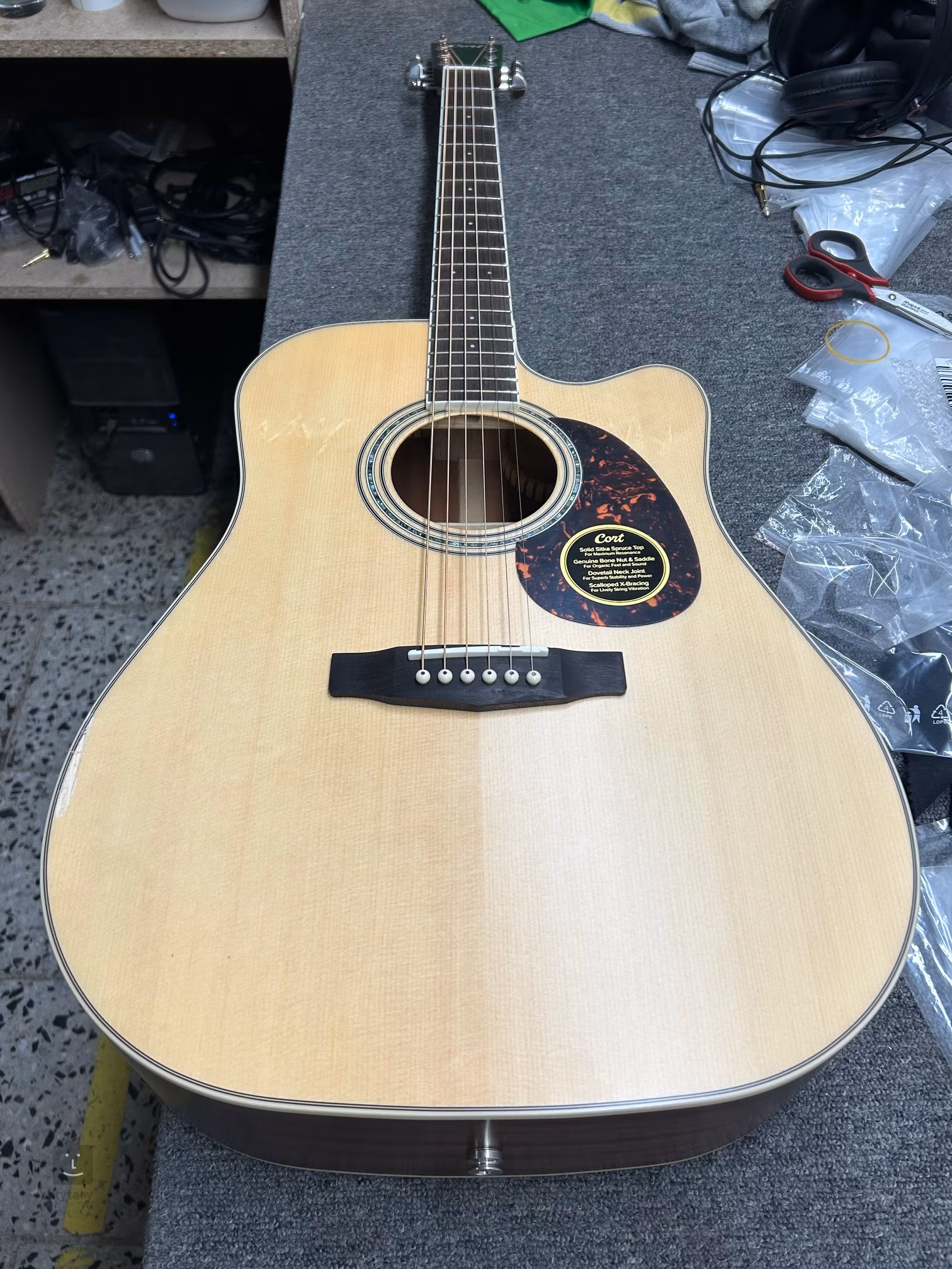 Az MR sorozat a Cort márka magasabb minőségű elektroakusztikus gitársorozata, amely népszerű Dreadnought típusú kialakítást, modern elemeket és kiváló hangzású elektronikát kínál – mindezt nagyon kedvező áron. A Cort MR 710F NS modell elülső lapja tömör Sitka fenyőből, hátsó lapja és oldala rétegelt mahagóniból készült. Ez a bevált faanyag-kombináció kiegyensúlyozott hangzást biztosít a hangszernek, a szükséges hangerejűség és melegség mellett. A mahagóni nyakhoz ovangkol fogólap van ragasztva, amelyen húsz bund található, a fogólap felületén pedig pozíciós pontok segítik a tájékozódást. A test alsó kivágása (Venetian) jó tapintást biztosít a fogólap magasabb pozícióiban is. A fa természetes akusztikus rezonanciáját alacsonyabb X-bordázás (Advanced Scalloped X) és vékony UV-lakkréteg támogatja. A jó sustain és a hangolás stabilitását a húrok rögzítése biztosítja a die-cast mechanikákban található valódi bivalycsontból készült nyereg- és nullapróbával, valamint a speciálisan kialakított ovangkolból készült húrtartóval. A hagyományos designelemeket díszes rozetta egészíti ki, amely gyöngyház és ABS gyűrűkből áll, világos szegély és praktikus pickguard. A hangszert Fishman Sonicore piezo pickup és Fishman Presys aktív elektronika biztosítja, háromsávos ekvalizerrel, hangerő-szabályzóval, Phase funkcióval és beépített hangolóval.