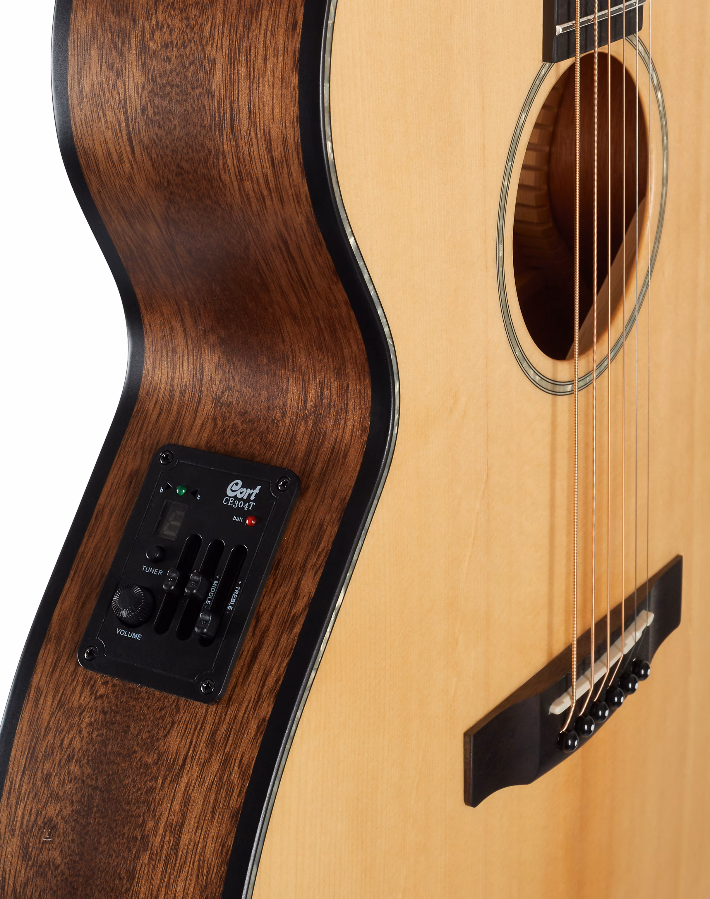 A hangszer hangrendszerét egy Cort CE304T előerősítő biztosítja, beépített hangolóval.