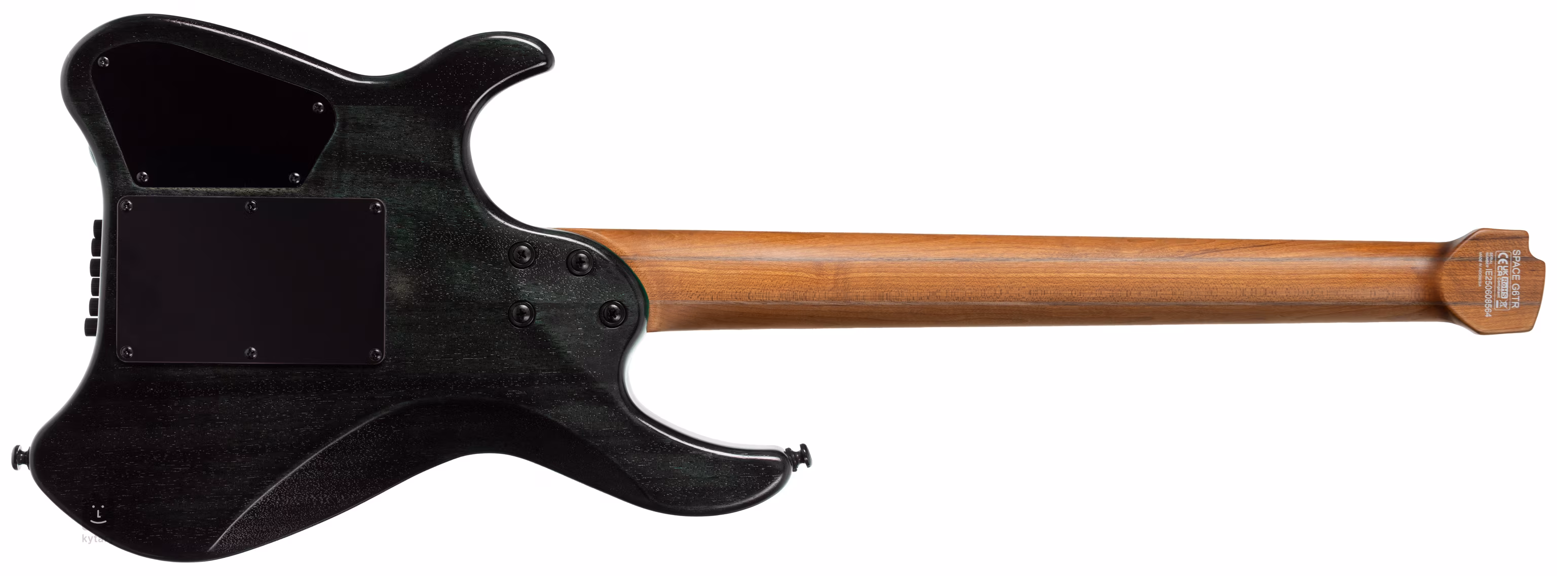 A Space G6TR SGLG fej nélküli gitár okoumé testét látványos lángolt juhar fedlap furnér díszíti. Az ötrészes, pörkölt juhar és diófa nyakhoz egy pörkölt juhar fogólap van ragasztva, amely huszonnégy Medium Jumbo rozsdamentes acél bunddal van ellátva. A fogólap sugara (12 - 15,75 hüvelyk) a test felé laposodik - lehetővé téve mind a kényelmes akkordjátékot és akkordbontást a nulladik bundon, mind a gyors aprítást a magasabb bundokon. A fogólapon való tájékozódást fekete pozíció- és oldalsó lumineszcens pontok segítik.