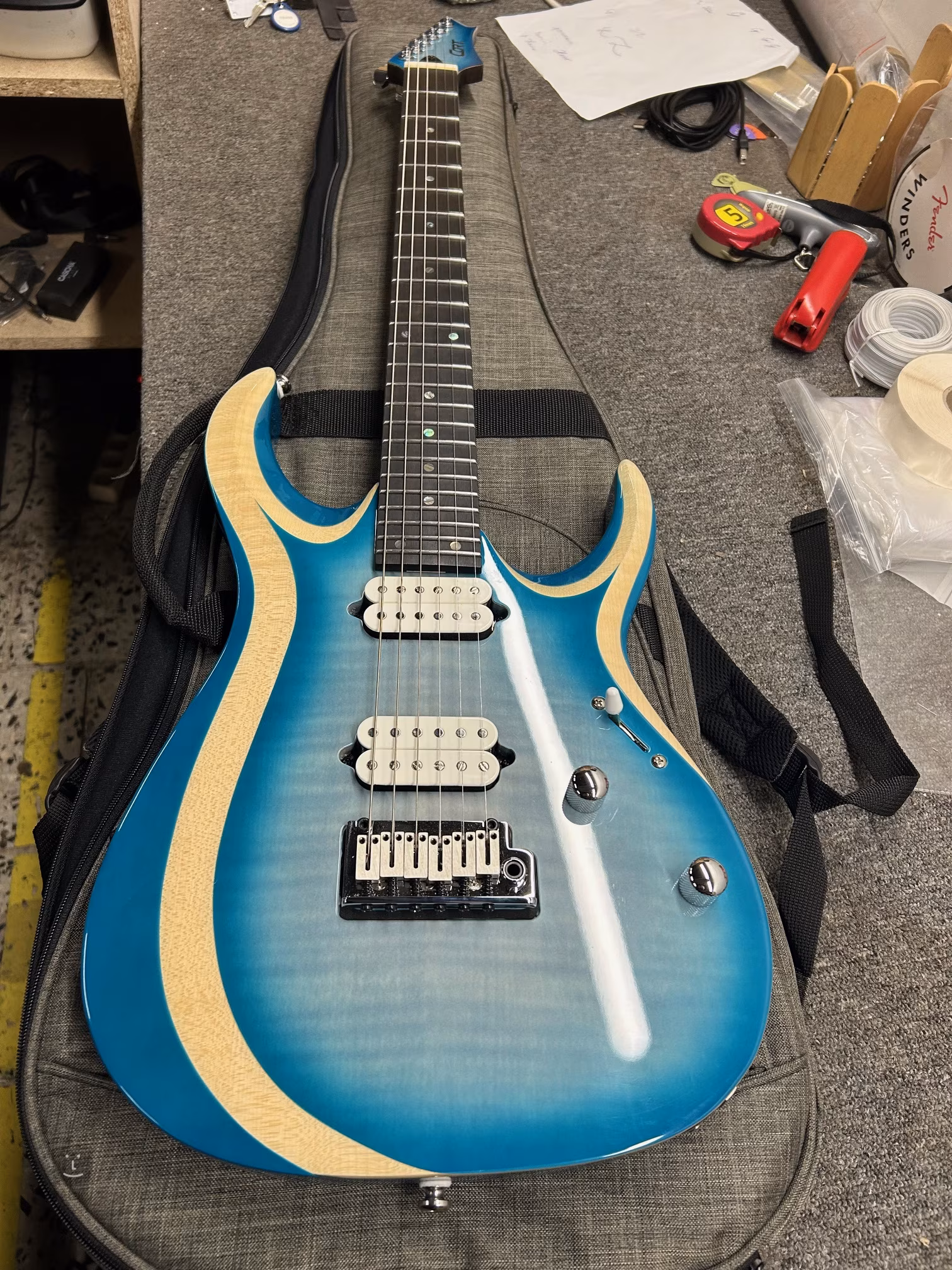 A Cort X sorozat modern dizájnú elektromos gitárokat kínál, amelyek elsősorban hard/heavy zene előadására készültek, de hangzásukat klasszikus rockban vagy fusionban is értékelni fogod. Kedvező áruknak köszönhetően biztosan vonzóak lesznek a rockzene iránt érdeklődő fiatalok számára, de a tapasztalt, technikailag jártas gitárosok sem fognak csalódni bennük. Az X700 Duality II PIB modell a Cort márka újabb lépése a magasabb modellsorozatok felé, teljes profi paraméterekkel, amelyet komolyan kell venni. A gitár első pillantásra is magával ragadó, modern, kifinomult dizájnnal, látványos, fládrovaný javor felületű mahagóni testtel és lenyűgöző Polar Ice Burst színkialakítással. A három darabból álló juhar és panga panga nyakhoz egy ébenfa fogólap van ragasztva, amelyen 24 rozsdamentes acél fogólap található. A fogólap felületén való eligazodást gyöngyház pozíciós pontok (abalone) és lumineszcens pontok segítik az oldalon. A két aktív Fishman Fluence Open Core Classic humbucker nemcsak kiváló dinamikát és precíz hangartikulációt biztosít a gitárnak, hanem széles hangpalettát is – az 5-pozíciós kapcsoló és a push/pull funkcióval ellátott hangszűrő összesen nyolc különböző konfigurációt/hangszínt kínál. A hangszer így a jazztől/blues-tól és a klasszikus rocktól/hardrocktól a metalig minden stílusban megállja a helyét. A húrok a gyártó saját zárható mechanikájába vannak rögzítve, ami lehetővé teszi a húrok gyors cseréjét, valamint a gyártó saját, beépített Cort CFA-III tremolója acél nyereggel. A gitár tokban kerül forgalomba.
