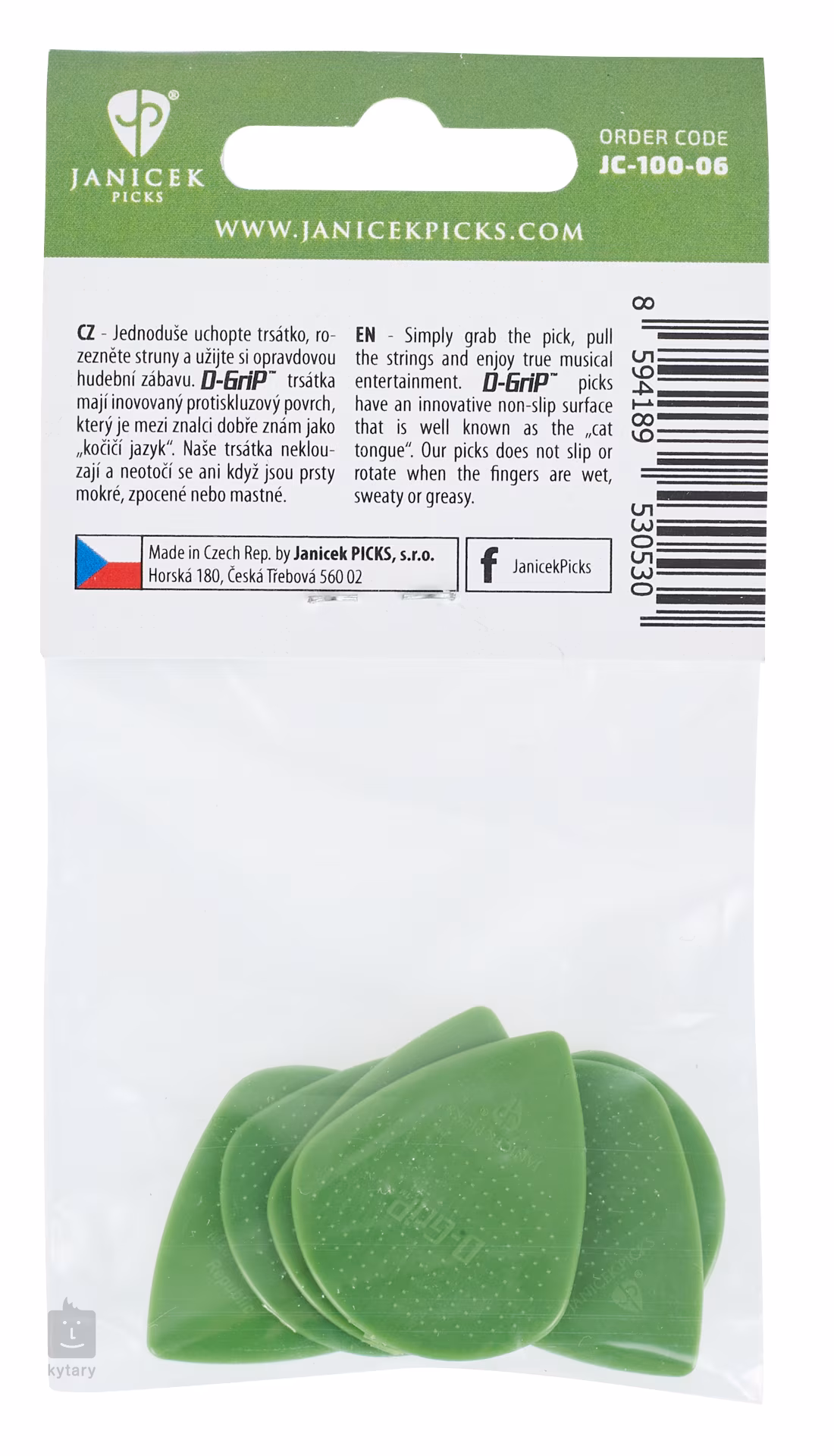 A cseh Janíček cég 1991 óta fejleszt pengetőket, és egy lényeges tényezővel tűnik ki a konkurens termékek áradatából: olyan pengetőket gyárt, amelyek tényleg nem csúsznak ki az ujjaidból. A különleges D-Grip felület, más néven "macskanyelv" szabadalmi oltalom alatt áll, és ez teszi a Janíček pengetőket világszerte népszerűvé.