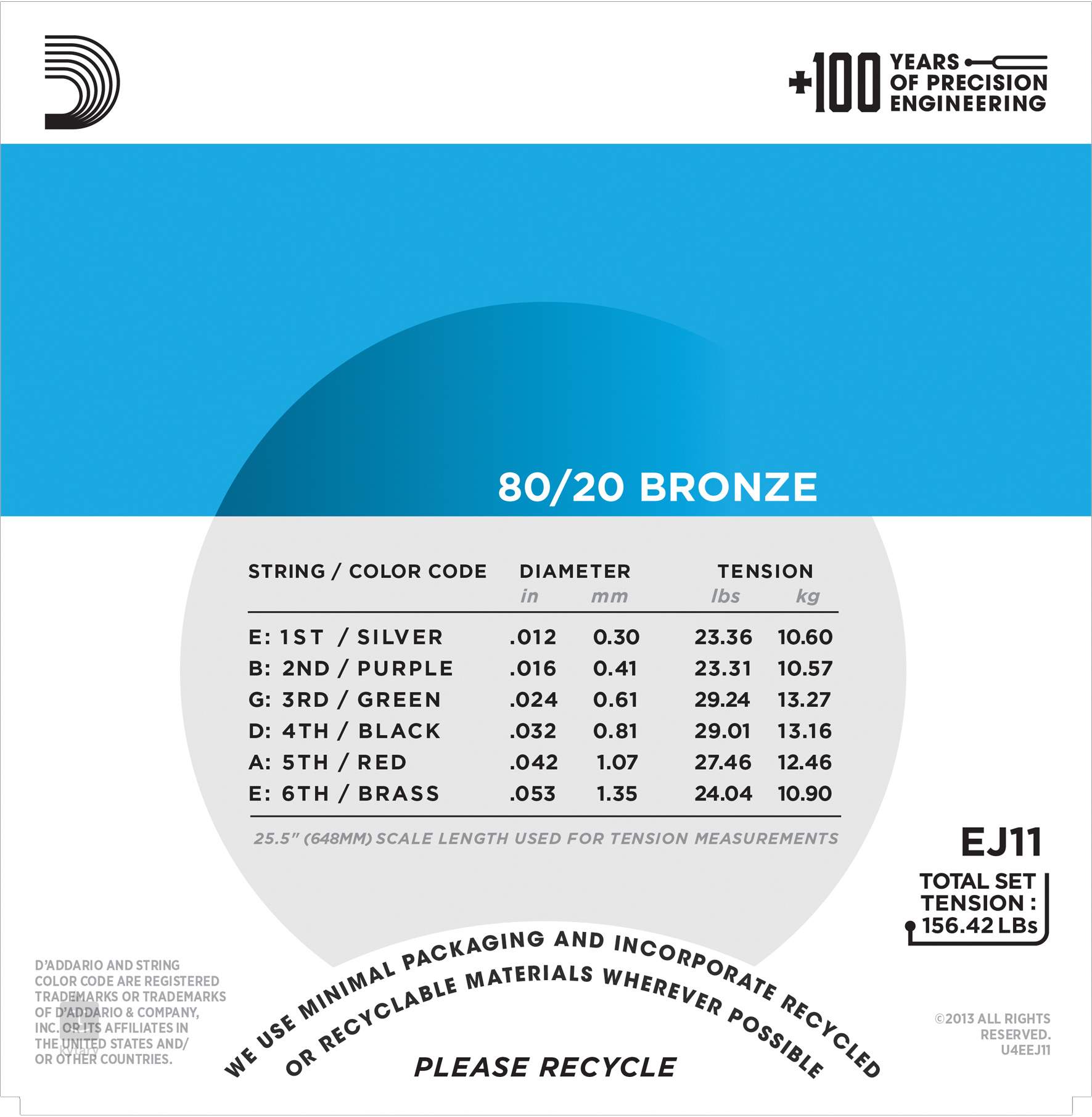 A D'Addario 80/20 Bronze húrok akusztikus hangszerekhez készültek, és eredeti bronzötvözetet (80/20) használnak, amellyel John D’Addario már a 30-as években elkezdett dolgozni. Nagyon népszerűek világos, szilárd és erős hangzásuk miatt, amelyet stúdióban és élő fellépéseken egyaránt értékelni fog. A magas széntartalmú hatszögletű acélmag hosszú élettartamot, kiváló intonációt és gyönyörű hangzást biztosít számukra. Ebben a csomagban 12–53 keménységű húrokat talál, amelyek erős hangzást és áthatolást biztosítanak.