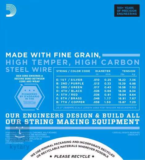 A D’addario XL elektromos gitárhúrok a gitárhúrok világában régóta bestsellernek számítanak, és valószínűleg soha nem mennek ki a divatból. Ez egy évek óta bevált arany standard, amely 1974 óta népszerű, így garantáltan nem fog csalódást okozni. Alapja egy hatszögletű acélmag, amely tökéletes intonációt, hosszú élettartamot és konzisztens játékérzetet biztosít. A tekercselt húrok nikkelbevonatú acélhuzallal vannak bevonva, ami frekvenciailag kiegyensúlyozott hangzást kölcsönöz nekik, amely a legtöbb zenei stílushoz alkalmas. Ebben a csomagban hét húros gitárhoz való húrokat találsz.