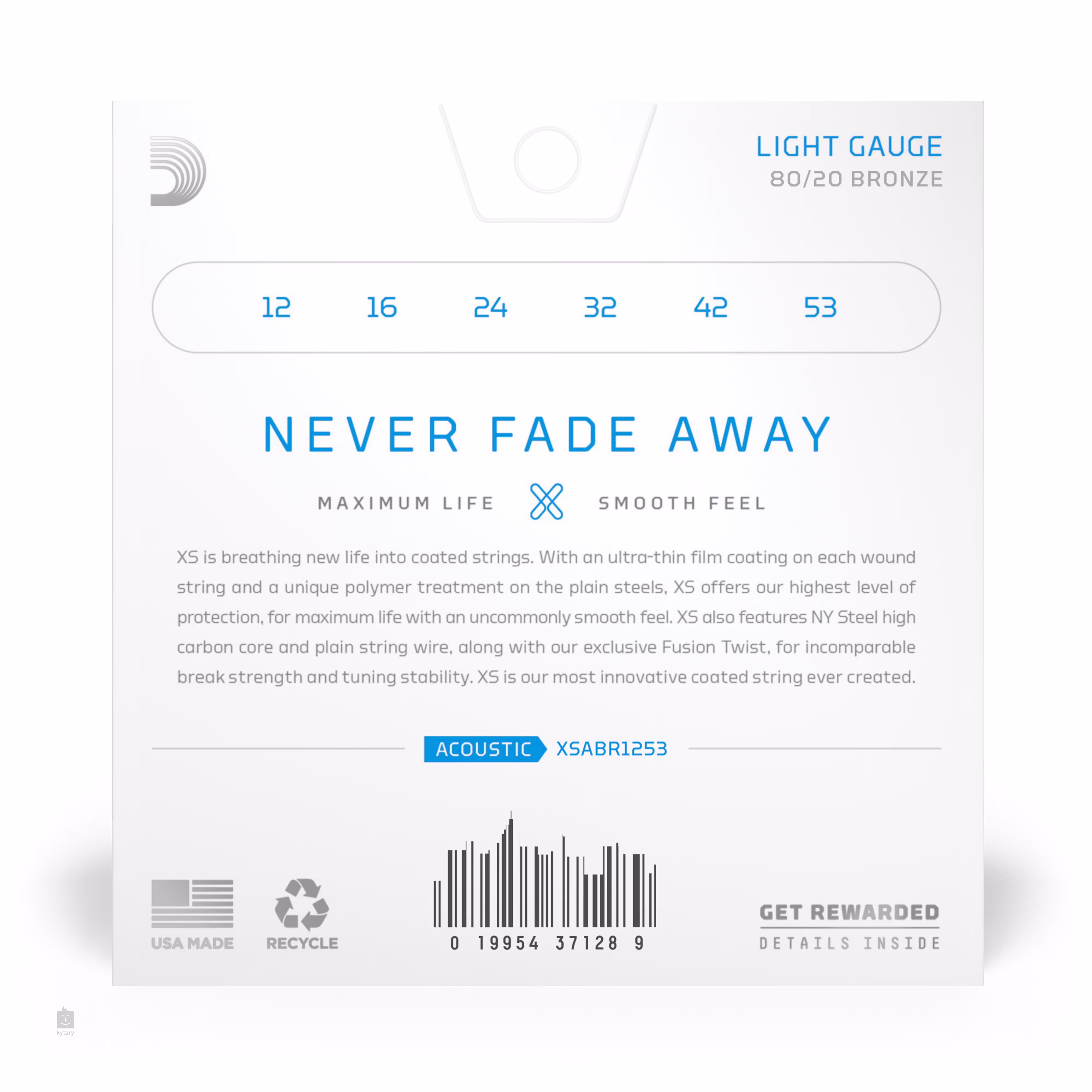 A D'Addario cég XS sorozatú húrai technológiai áttörést jelentenek a bevont húrok területén, és a világhírű cég katalógusában található termékek közül a csúcsminőséget képviselik. Ezek a húrok ötvözik az XT sorozat legjobb tulajdonságait, de még egy lépéssel tovább emelik a lécet. Hihetetlenül vékony bevonatuknak köszönhetően páratlan élettartammal és kellemesen sima felülettel rendelkeznek, miközben semmit sem vesznek el a D'Addario húrok híres kiváló hangzási tulajdonságaiból. A hatlapú, magas széntartalmú acélmag és a bronzötvözetből (80/20) készült tekercselésnek köszönhetően tiszta és átható hangzást kínálnak, amelyben a magas frekvenciák dominálnak. Ugyanakkor kiváló hangstabilitással és nagy ellenállással büszkélkedhetnek. Egyszóval csúcsminőségű húrok, amelyek nagyon sokáig kitartanak. Ebben a csomagban 12–53 keménységű húrokat talál, amelyek erős hangzást és átható hangot kínálnak.