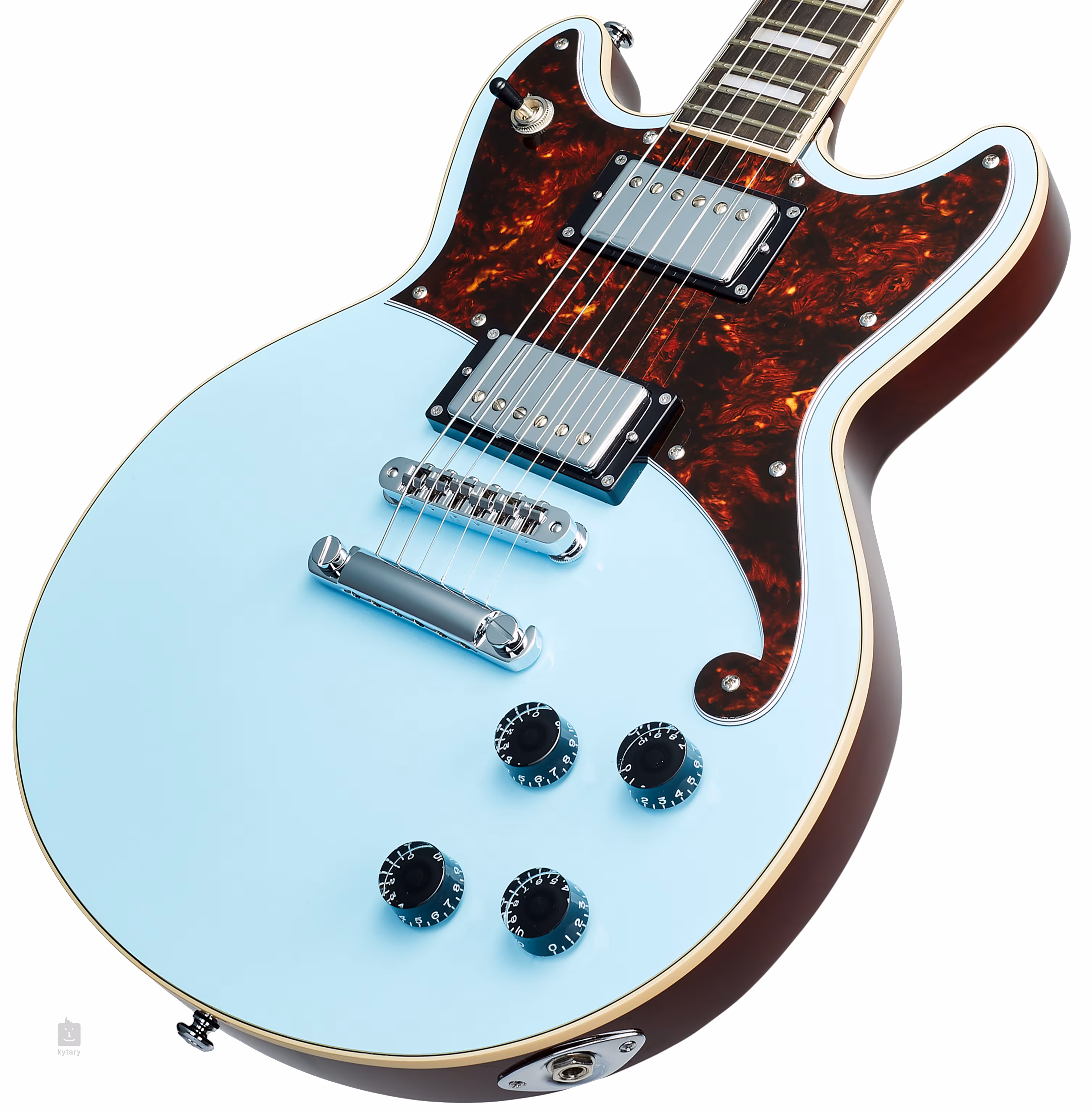 A Premier Brighton Sky Blue az amerikai D'Angelico márka elektromos gitárja, stílusos double-cut kivitelben. A szűkebb mahagóni test mélyebb kivágással (belly cut) ergonomikus alakjának és alacsonyabb súlyának köszönhetően maximális kényelmet biztosít a játékhoz. A juharfából készült nyakhoz ovangkol fogólap van ragasztva, amelyen huszonkét közepes méretű bund található. A fogólapon a gyöngyházutánzatból készült pozíciós jelölők segítik a tájékozódást.