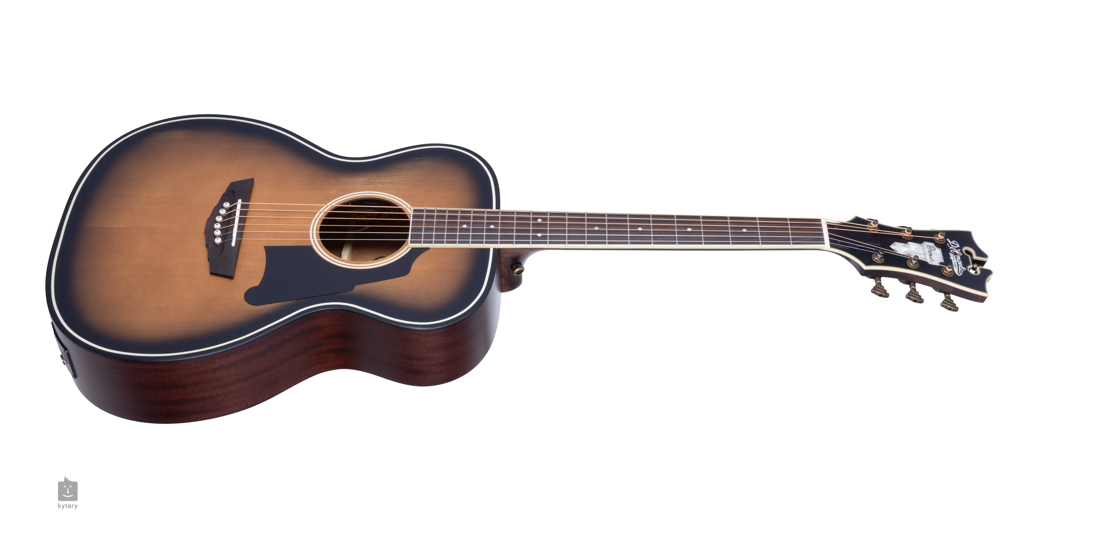 A Premier sorozat a D'Angelico cég portfóliójában található, megfizethetőbb hangszerekből áll, amelyek azonban teljes mértékben megfelelnek a márkához kapcsolódó minőségi követelményeknek. A D'Angelico Premier Tammany elektroakusztikus gitárok OM (Orchestra) méretű testtel rendelkeznek, és meleg, kiegyensúlyozott hangzással örvendeztetik meg a hallgatót. A PREMIER TAMMANY Orchestra E Aged Burst gitár elülső lapja tömör fenyőből, hátsó lapja és oldala pedig laminált sapeléből készült. A gitár jó akusztikai tulajdonságait alacsonyabb X-bordázás (Scalloped X) támogatja. A keskenyebb „C” profilú mahagóni nyakhoz paliszander fogólap van ragasztva, amelyen húsz Medium Jumbo méretű fekvő van. A fogólapon való orientációt kis gyémánt alakú, imitált gyöngyházból készült pozíciójelölők segítik. A gitár testét a D'Angelico hangszerek hagyományos formájú fejjel egyensúlyozza, amelyet a cég logója díszít imitált gyöngyházból. A húrok a csontból készült nyereg- és nullapálcán keresztül a Stairstep Wave hangolókulcsokhoz és a paliszanderfa húrtartóhoz vannak rögzítve. A D'Angelico gitárok stílusos megjelenését az Antique Bronze kivitelű hardver, az ébenfa borítású merevítő és az Art-Deco stílusú elemek hangsúlyozzák – legyen szó a fej formájáról, a hangolókulcsok kialakításáról, a fogólap pozíciójelzőiről vagy az újratervezett Scalini pickguard formájáról. A hangosítás lehetőségét a Fishman Presys-VT elektronika biztosítja, amelynek Volume és Tone vezérlői diszkréten vannak elhelyezve a hangszertest hanglyukában.