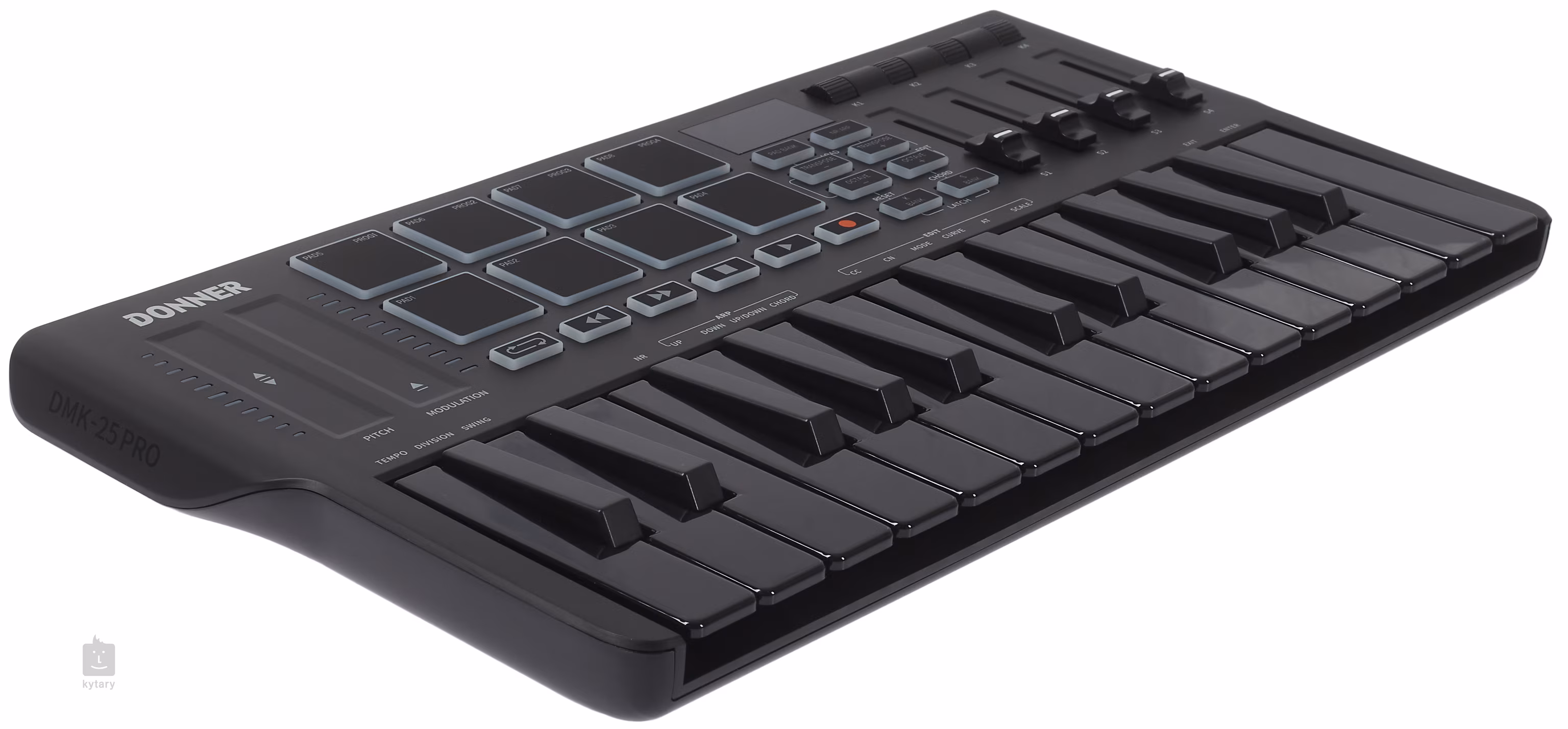 A Donner DMK-25 egy kompakt MIDI billentyűzet 25 billentyűvel, amely megnyitja az utat a professzionális minőségű zenélés felé, miközben a kezdők számára is elérhető marad. Az intelligens Dynamic Scale Mode -nak köszönhetően a basszusvonalak, dallamok és akkordok könnyedén megszólaltathatók - 16 hangolás áll rendelkezésre a különböző zenei műfajokhoz. A még nagyobb rugalmasság érdekében az arpeggiátor, a hangismétlés és az akkord funkciók lehetővé teszik a zenei ötletek gyors kidolgozását és az improvizációt.