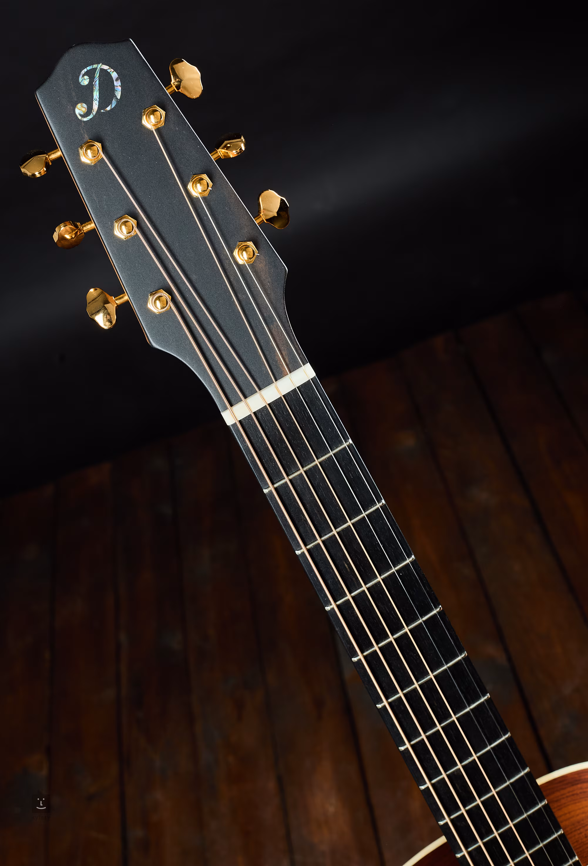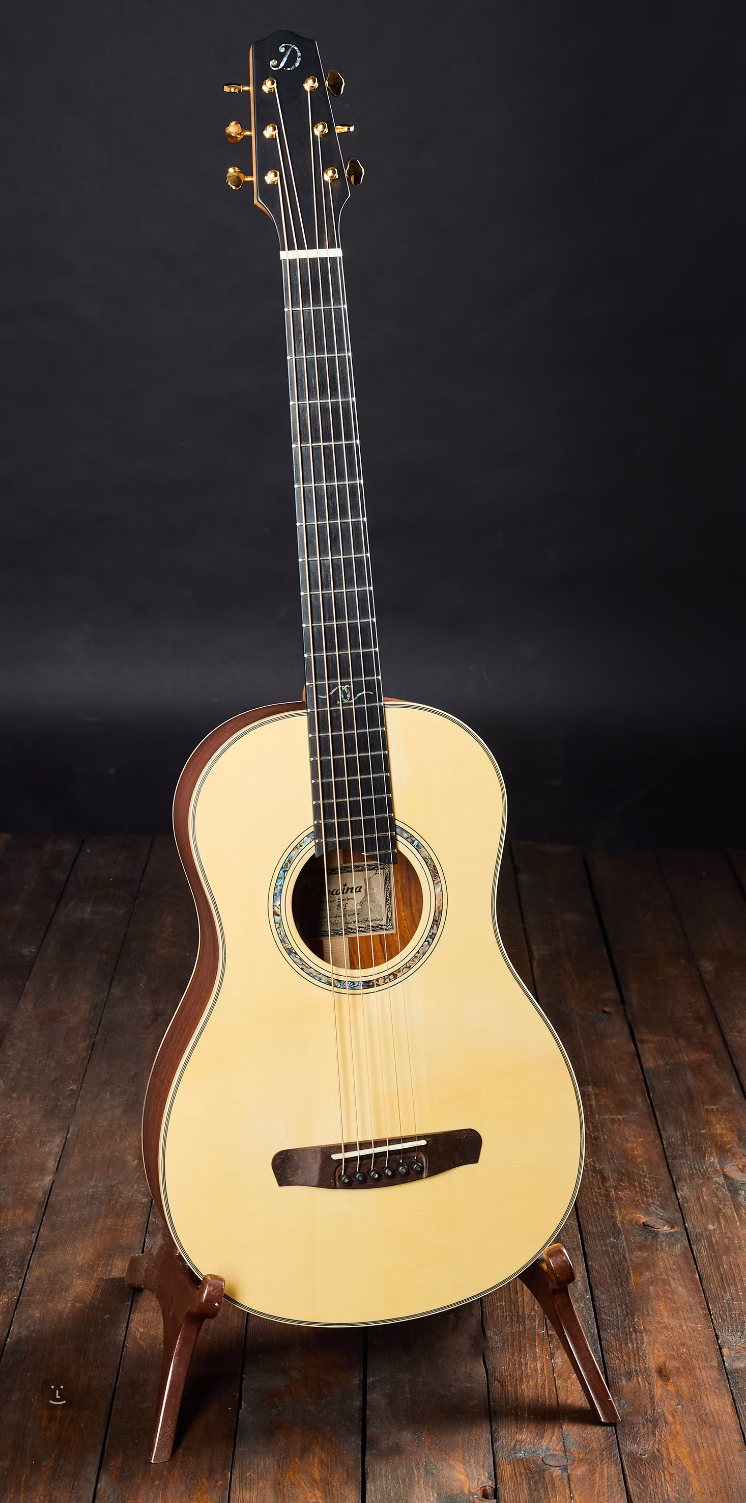 Lucfenyő hangfal. A hátlap 2 darab cocobolo anyagból készült (a normál kivitel 3 darabból áll az anyag ritkasága miatt). Cocobolo fújtató. A hangszer L.R. Baggs Anthem hangrendszerrel van felszerelve.