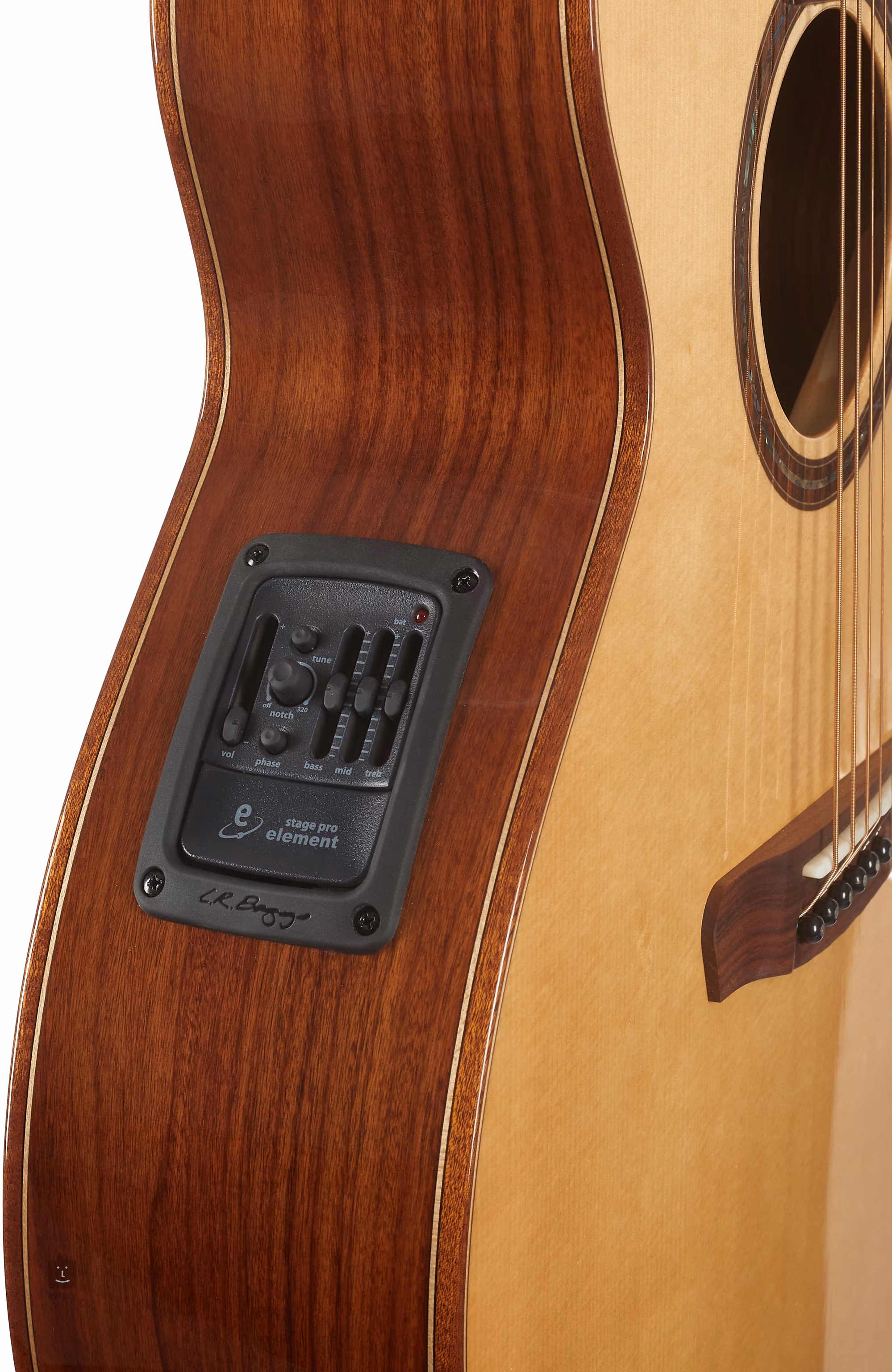 Az L. R. Baggs StagePro Element elektronika ideális megoldás akusztikus gitárok hangosításához. Az előerősítő hangerő-szabályzóval, beépített hangolóval, háromsávos ekvalizerrel, valamint Notch Filter és Phase szabályzókkal rendelkezik, amelyekkel minden zavaró elemet kiküszöbölhet, és a hangszer akusztikus hangzása teljes pompájában érvényesülhet.