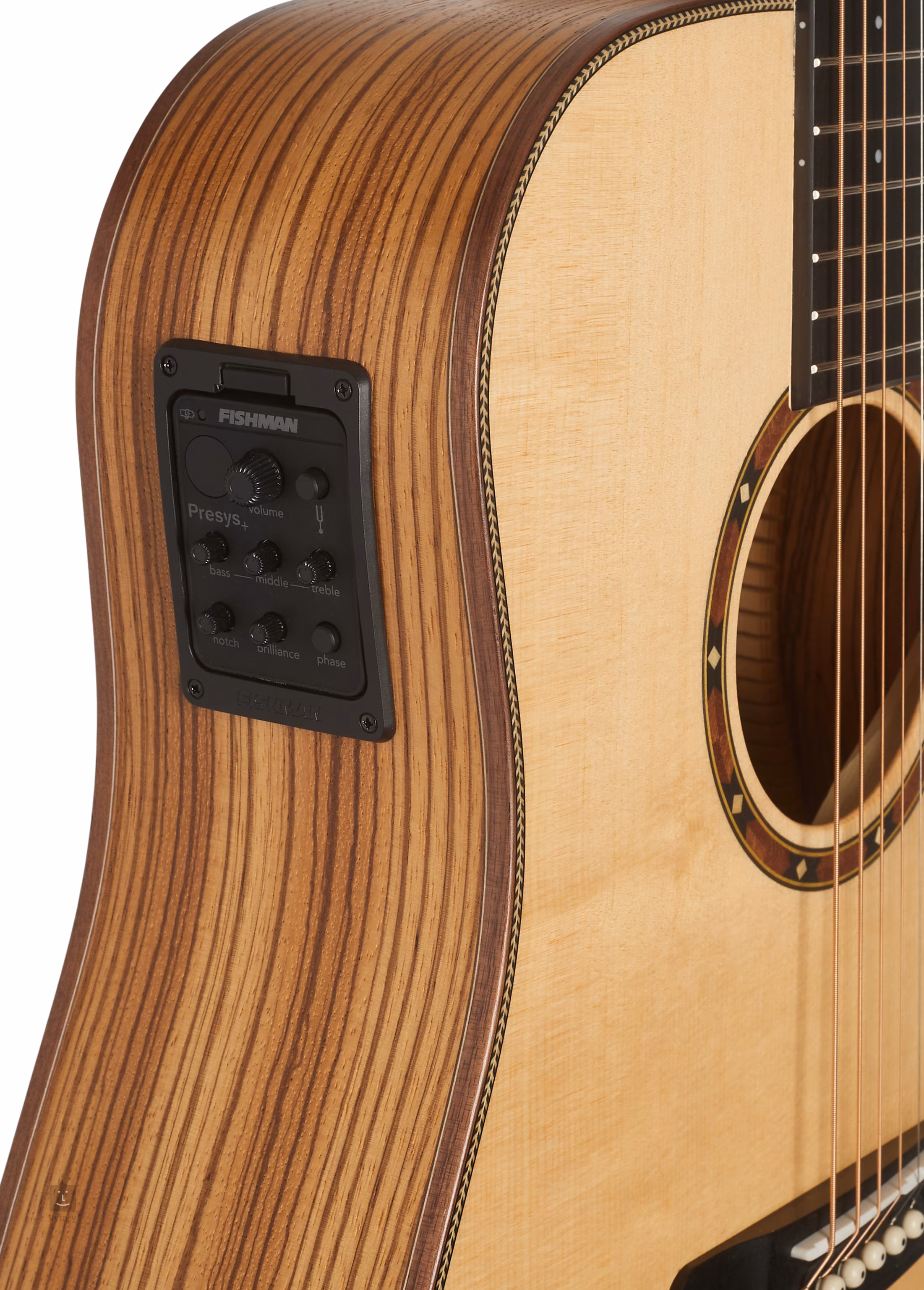 A Fishman Presys+ előerősítő a gitár testében és a Fishman Sonicore húrtartó alatti hangszedő ideális megoldást kínálnak az akusztikus gitárok hangosításához. Az előerősítő hangerő-szabályzóval, beépített hangolóval LED-kijelzővel, háromsávos ekvalizerrel, Brilliance szabályzóval, valamint Notch Filter és Phase szabályzóval rendelkezik, amelyekkel minden zavaró elemet kiküszöbölhet, és a hangszer akusztikus hangzása teljes pompájában érvényesülhet.