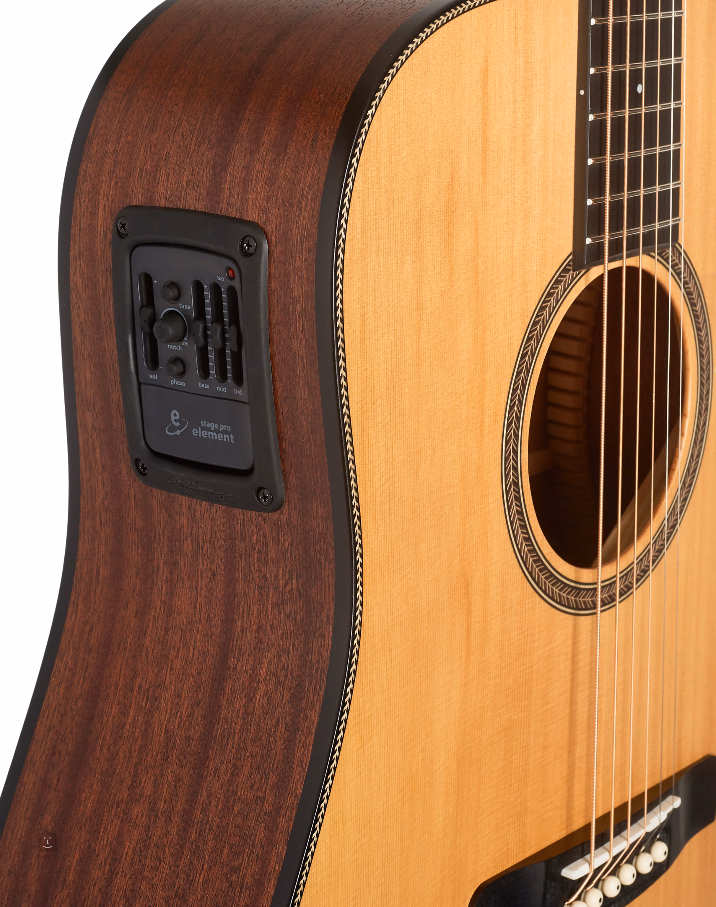 Az L. R. Baggs StagePro Element elektronika ideális megoldás akusztikus gitárok hangosításához. Az előerősítő hangerő-szabályzóval, beépített hangolóval, háromsávos ekvalizerrel, valamint Notch Filter és Phase szabályzókkal rendelkezik, amelyekkel minden zavaró elemet kiküszöbölhet, és a hangszer akusztikus hangzása teljes pompájában érvényesülhet.