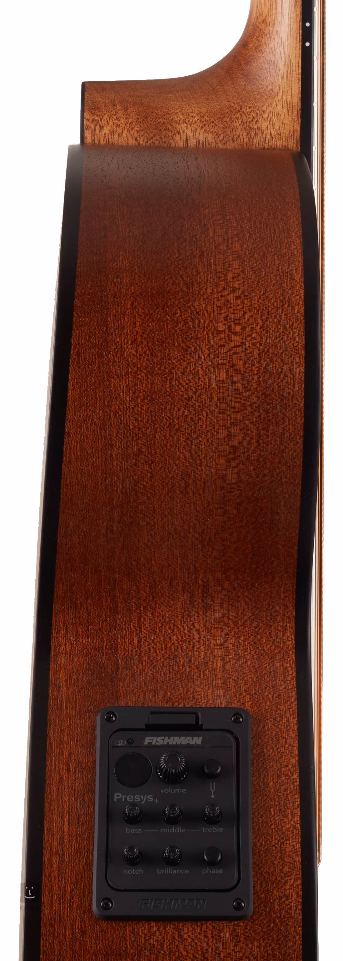 A gitár hátuljában található Fishman Presys+ előerősítő a Fishman Sonicore mélynyomóval együtt ideális akusztikus gitárhangzást biztosít. Az előerősítő rendelkezik hangerőszabályzóval, beépített hangolóval LED kijelzővel, háromsávos EQ-val, amelyet egy Brilliance szabályzó egészít ki, valamint Notch Filter és Phase szabályozókkal, hogy megszelídítse a zavaró hangzásokat és kihozza a hangszer teljes akusztikus hangzását.