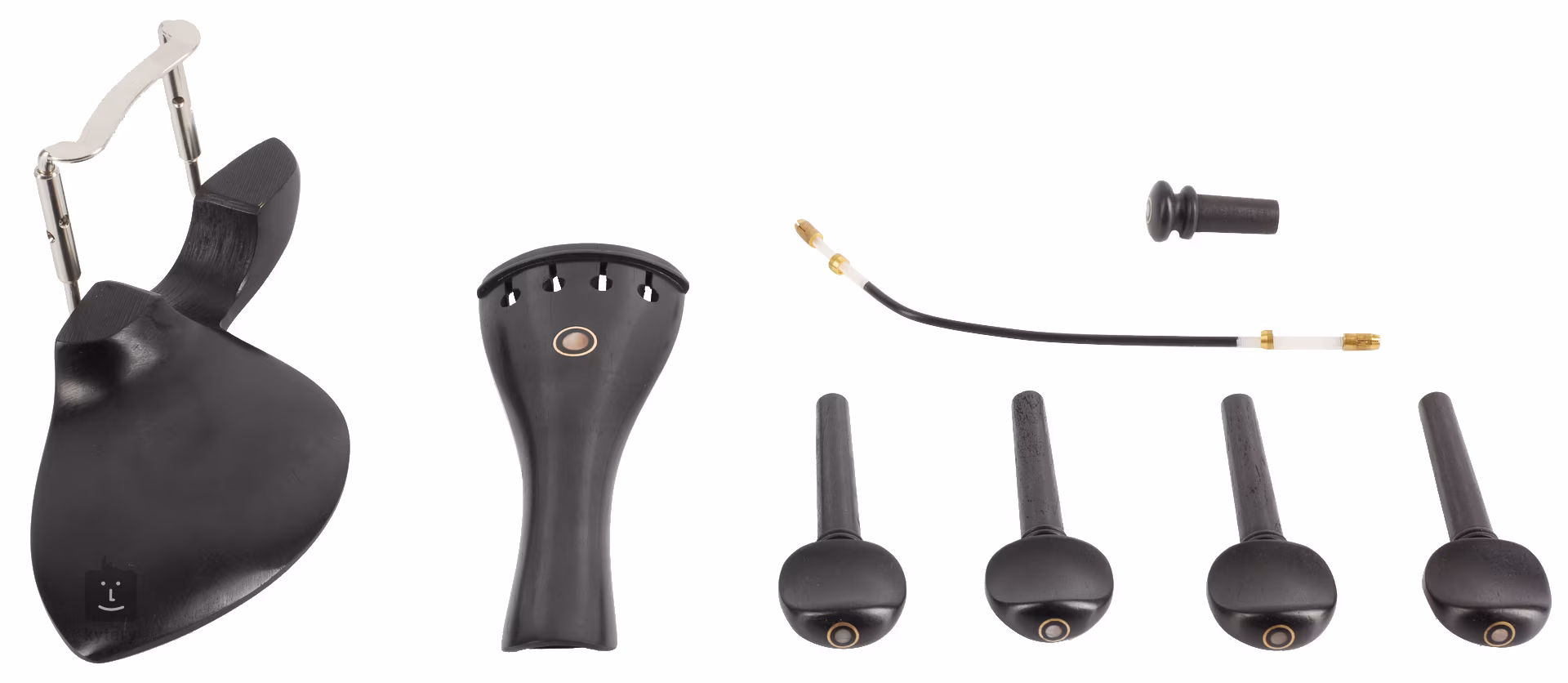 Ébenfa szett a Dowinától, egy hagyományos hangszergyártótól. 4/4-es hegedűhöz alkalmas, a csomag tartalmaz egy húrt, állkapcsot, hangolószegeket és makkot.