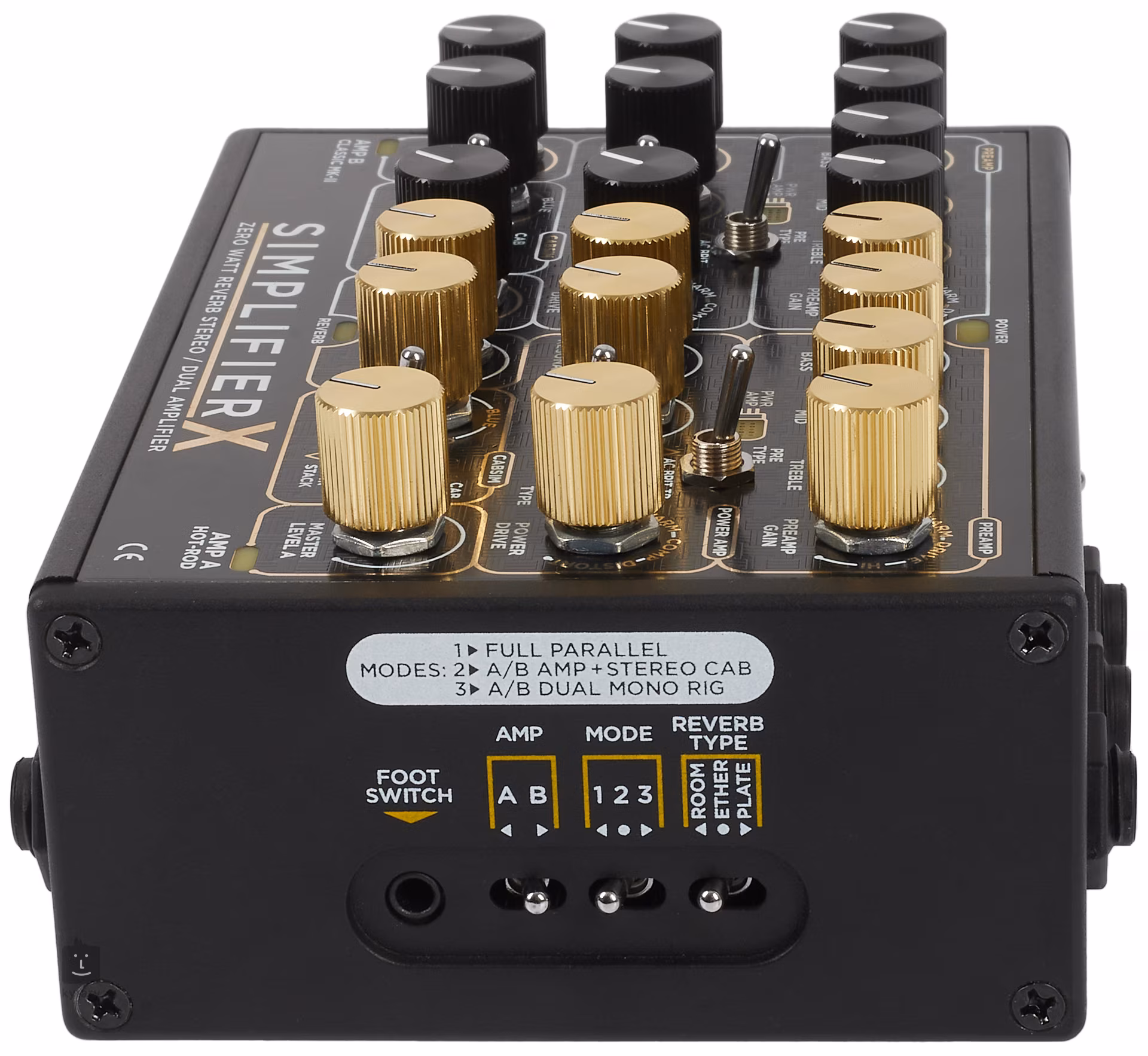 A Simplifier X kétcsatornás analóg előerősítőt kínál hat gitár voicinggal, amelyek a legapróbb részletekig megragadják a piacon kapható legjobb és legnépszerűbb előerősítők jellemzőit és tulajdonságait. A Hot-Rod feliratú Amp A az AC Brit TB voicingjait, az USA Rod modern amerikai hangzását és az MS 800 megfelelően dögös, magasabb erősítésű hangjait tartalmazza, az Amp B a Simplifier pedálok korábbi verzióiból ismert erősítő voicingokat, azaz a brit 15 wattos klasszikus AC Brit hangzását és érzetét, a "tweed" USA voicingot és a rockos MS Britet.