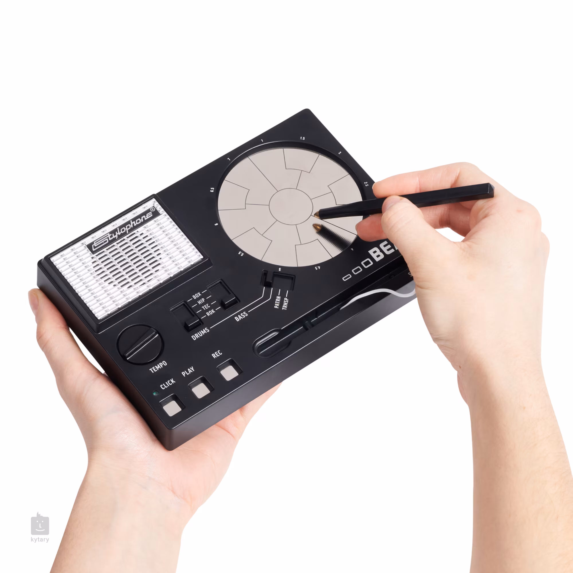 Nem kell dobosnak lennie ahhoz, hogy használni tudja a Stylophone BEAT-et, a négy egyedi hangbank segítségével (ROCK, TECHNO, HIPHOP és BEATBOX) könnyen és gyorsan létrehozhat dob- és basszusgitár loopokat. Csak meg kell érintenie a beépített stylussal a kör alakú beat padot, kiválasztania a különböző dob- és basszusgitárhangokat, majd rögzítenie több réteget a gyors és kiszámíthatatlan beatok létrehozásához.