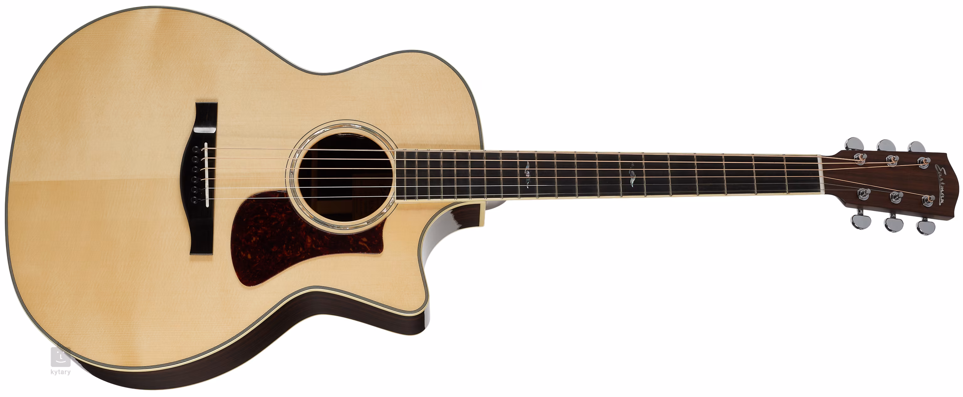A húrokat nikkel hangolókészülékek és egy ébenfa fogólap tartja a csont fogólap felett. A finom kivitelezést kiemeli a kétoldalas, elefántcsont utánzatú test- és fogólap-kötés, a teknőspáncél utánzatú koptató és a fejlécen található gyöngyházszínű céglogó.