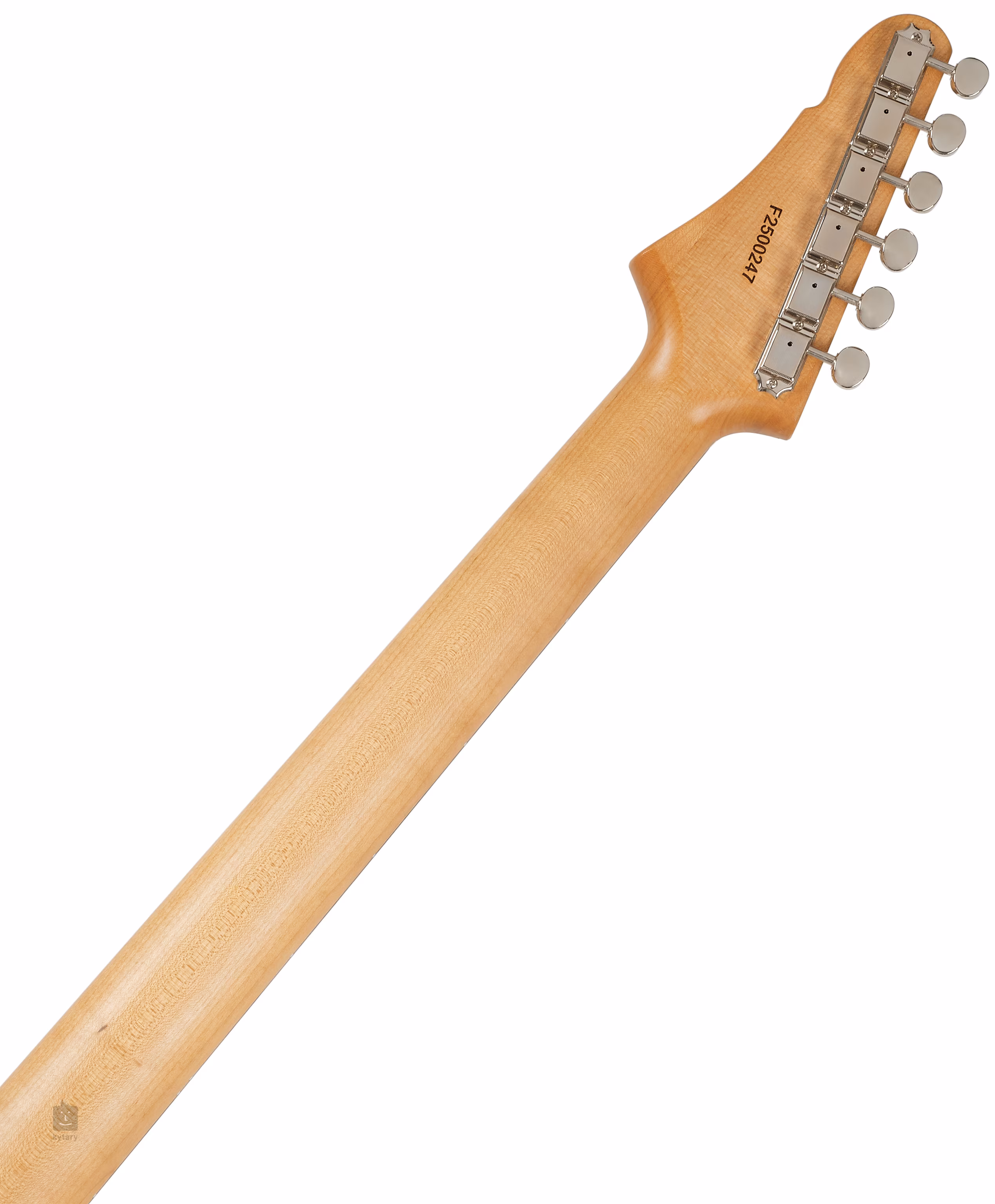 Egy egyedi aranyfóliás szappanos humbucker és két Tonerider zajtalan egymásra helyezett egytekercses hangszedő adja a gitár hangzásának széles skáláját, amely a legkülönbözőbb zenei stílusokban teszi kiemelkedővé. A hangzás karakterét a szabványos potenciométerek segítségével állíthatod be. A stabil hangolást és a jó kitartást a húroknak a csont nulla bundon keresztül történő rögzítése biztosítja hat in-line mechanikával és egy Aumsen lebegő tremolóval, sárgaréz blokkal. A szép kivitelezést az arany eloxált alumíniumból készült pickguard és a nikkelezett hardverek hangsúlyozzák.